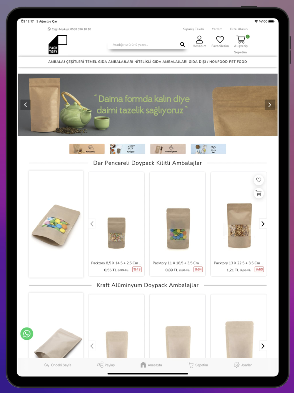 Uygulamamız üzerinden ürünlerimizi inceleyebilir sepete ekleyip sipariş verebilirsiniz.