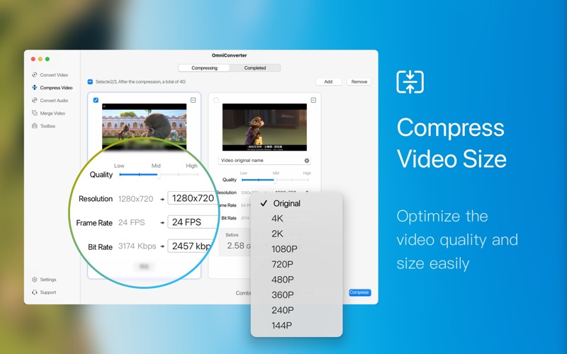 Video File Compression helps you to reduce your video file size, It saves space on your hard drive.