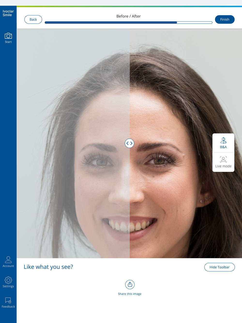 Ivoclar Smile enables the user to visualize a future smile in a fast, simple and at the same time professional way. It shows in real time the esthetic results of a treatment and helps the dentist to convince the patient right from the start.