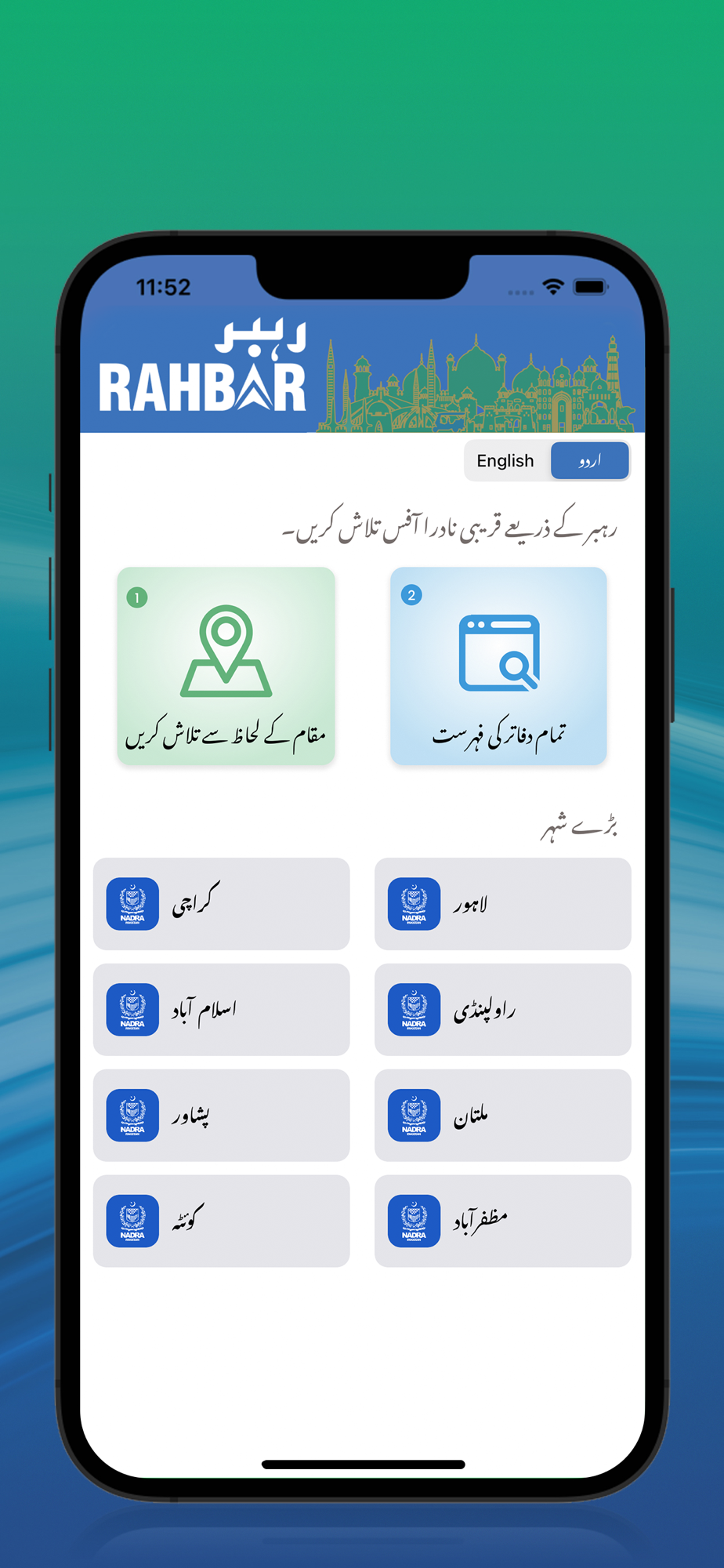 Rahbar is developed to facilitate Pakistan's citizens who intend to visit NADRA Offices.
