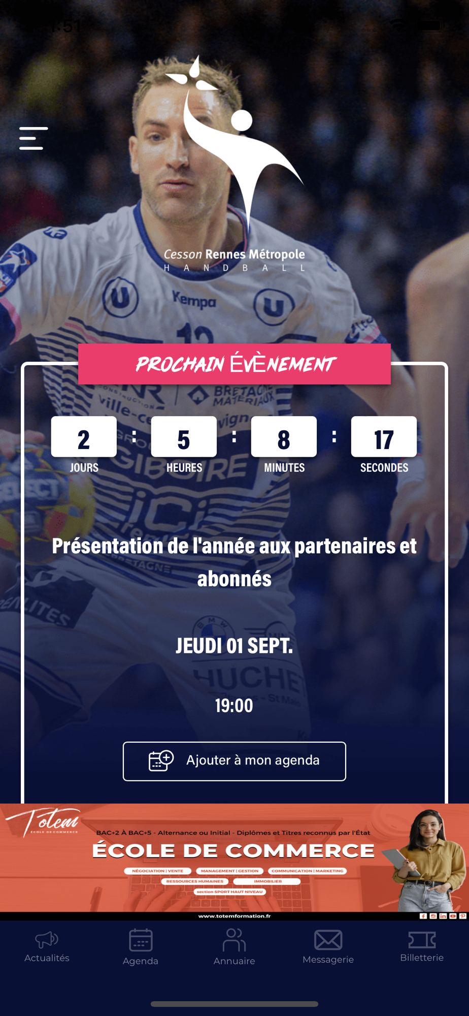 - Actualités de votre équipe, du club et des entreprises partenaires