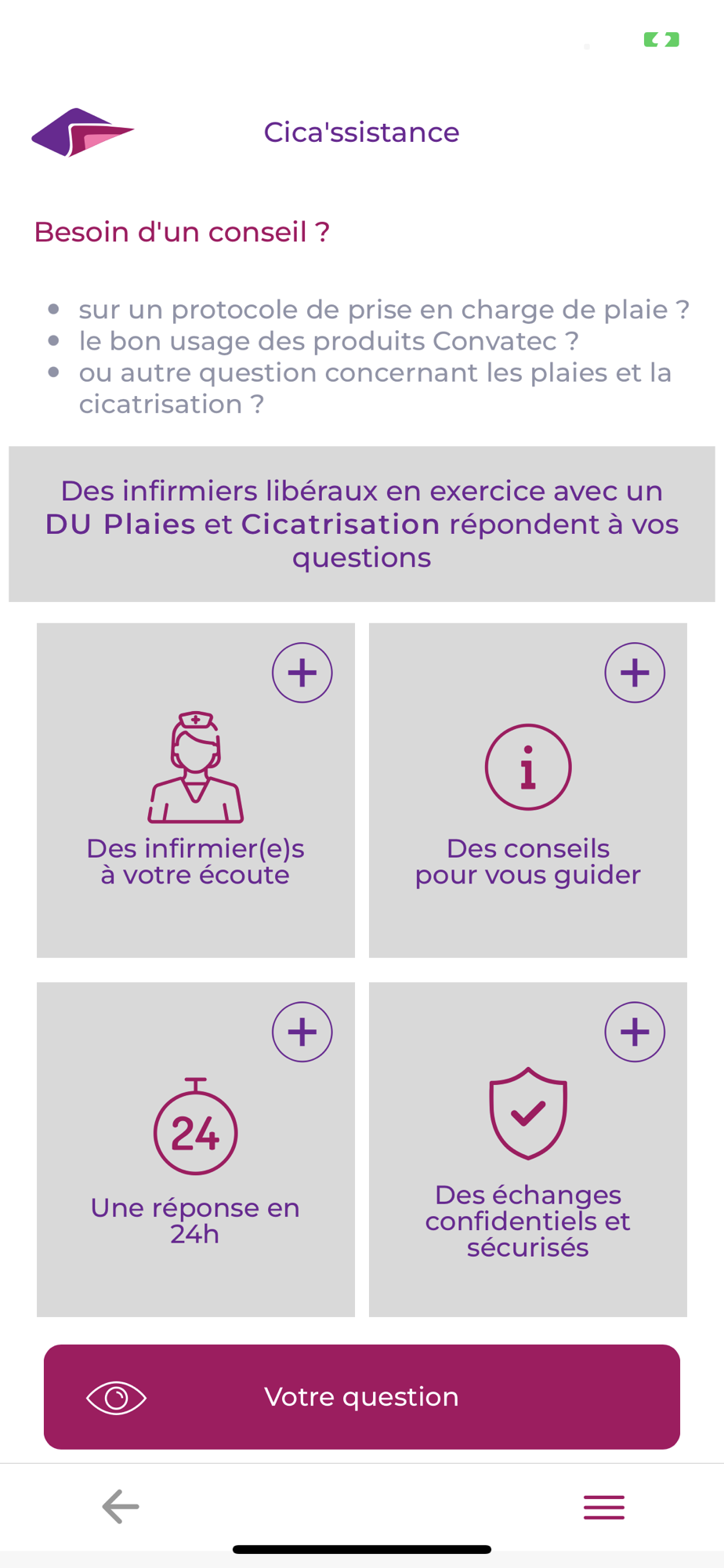 - Service Cica'ssistance : une question sur un protocole de soin ou sur le bon usage d’un pansement ? Un infirmier diplômé d’un D.U Plaies et Cicatrisation vous répond en 24 h