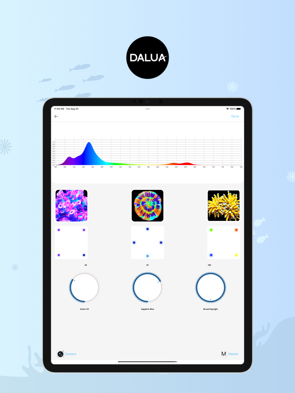 The DALUA ecosystem app allows you full control for your Illumagic lighting and soon to control the Great White filtration range such as skimmers, pumps and wave makers.