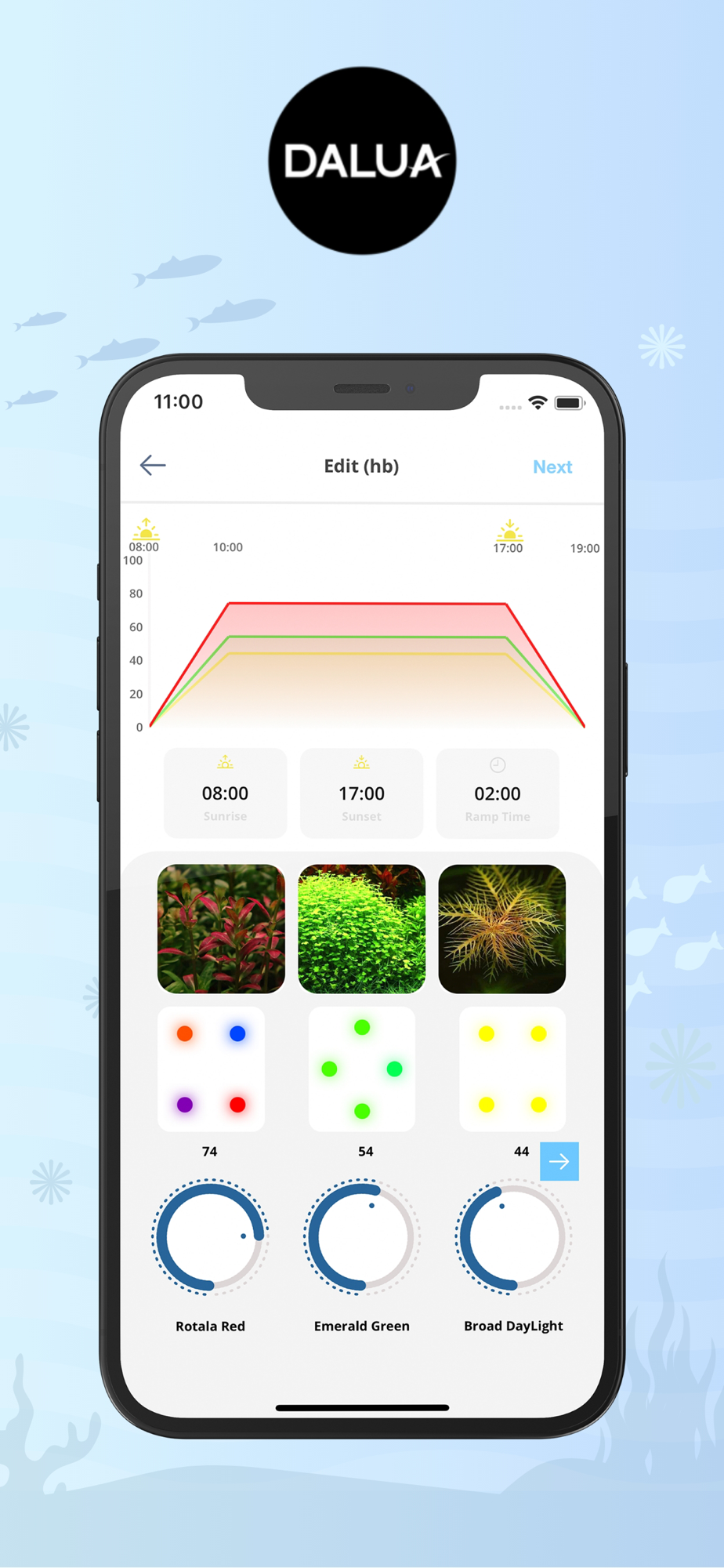 Added features apart from the grouping and creating of aquariums are precise spectral control for freshwater or saltwater aquariums. Minute by minute weather updates on the most famous coral reefs from around the world, DALUA schedules and public schedules of your favourite aquarium content creators