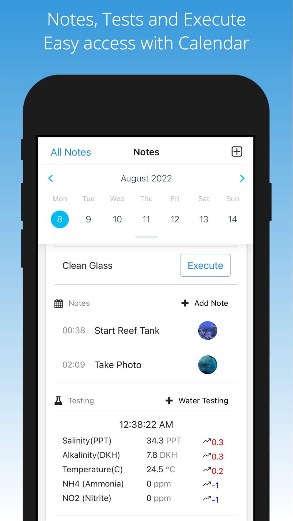 - Keep aquarium notes