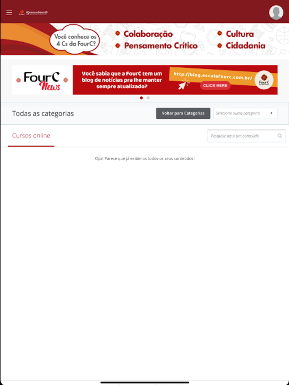 Conteúdos voltados ao desenvolvimento pessoal e profissional do time FourC, em formatos diversificados, integrando a nossa cultura e filosofia às nossas rotinas, com materiais de apoio para download, recursos audiovisuais, biblioteca, videoteca e muito mais, em um ambiente eficiente e intuitivo.