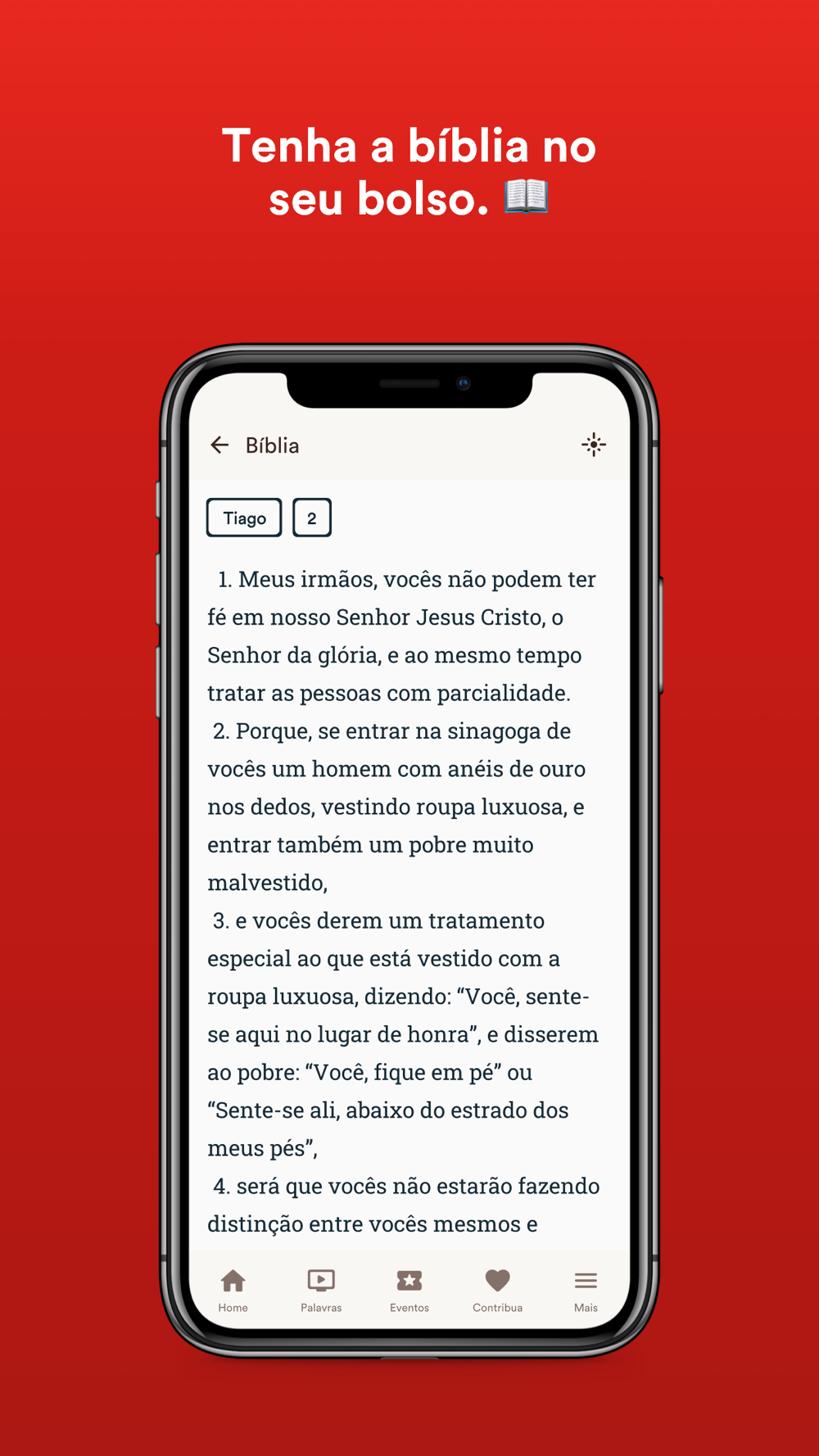- Siga a agenda e fique por dentro de tudo que acontece na igreja, inscreva-se em eventos e tenha seus ingressos sempre com você.