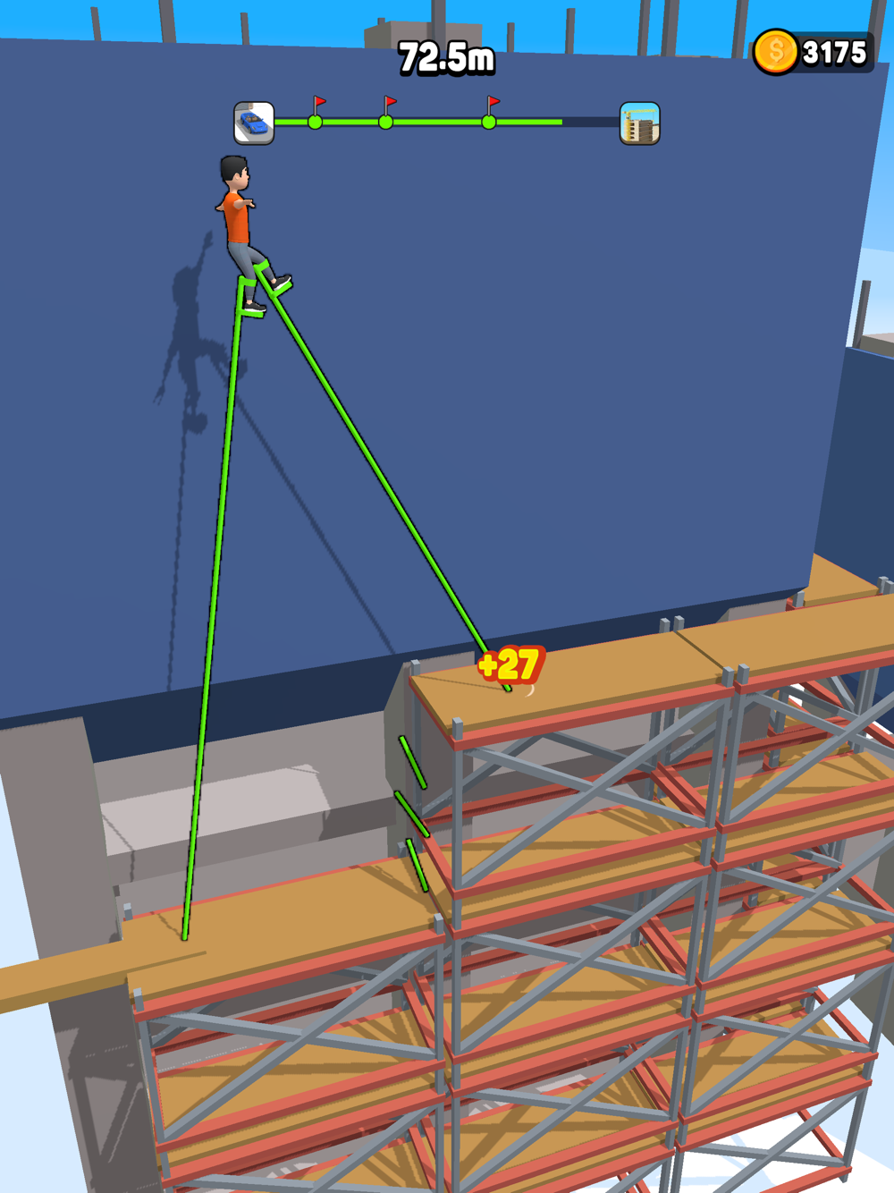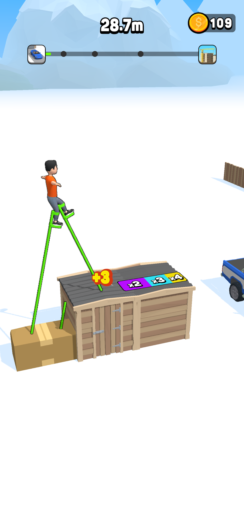 Upgrade your stilts and travel further and further trying to beat your record.