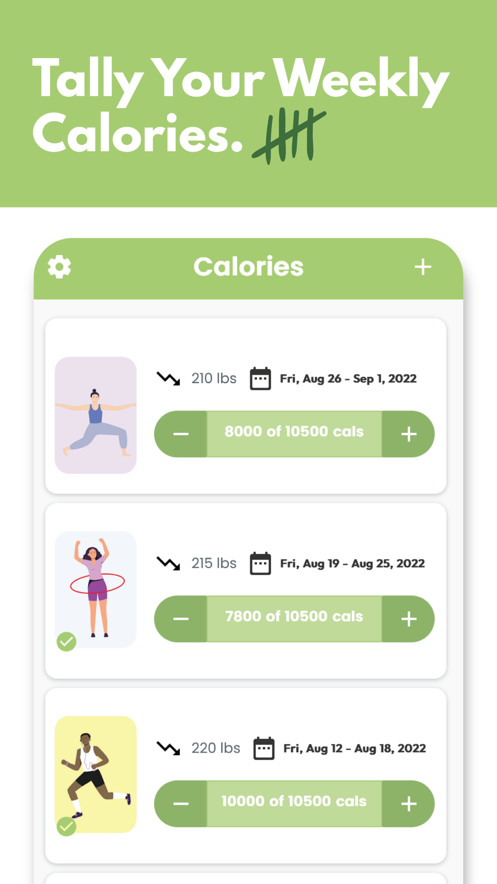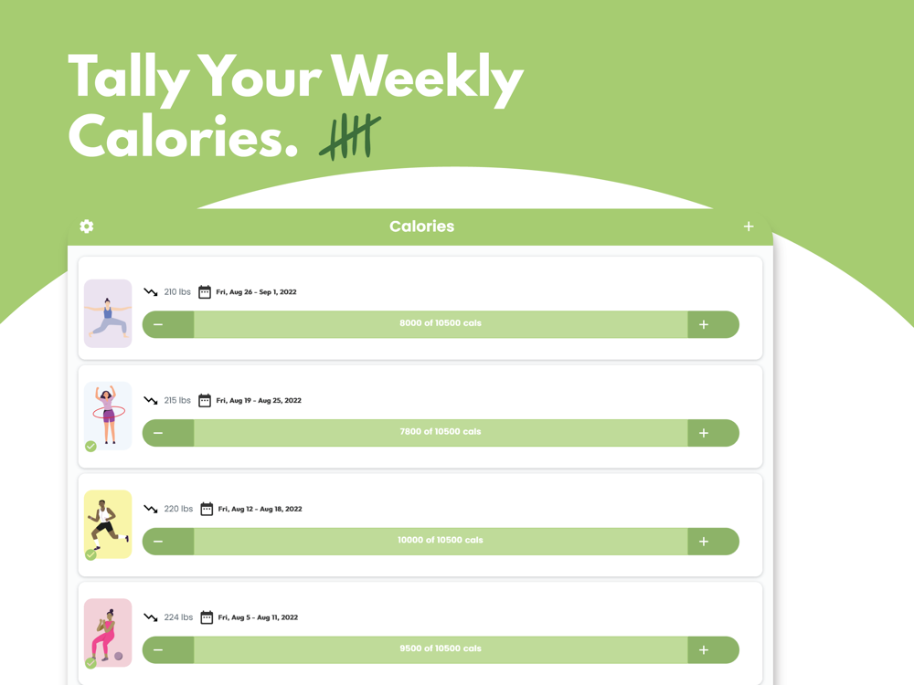 - Each day return to our app to log them and see how many calories you have left in the week.