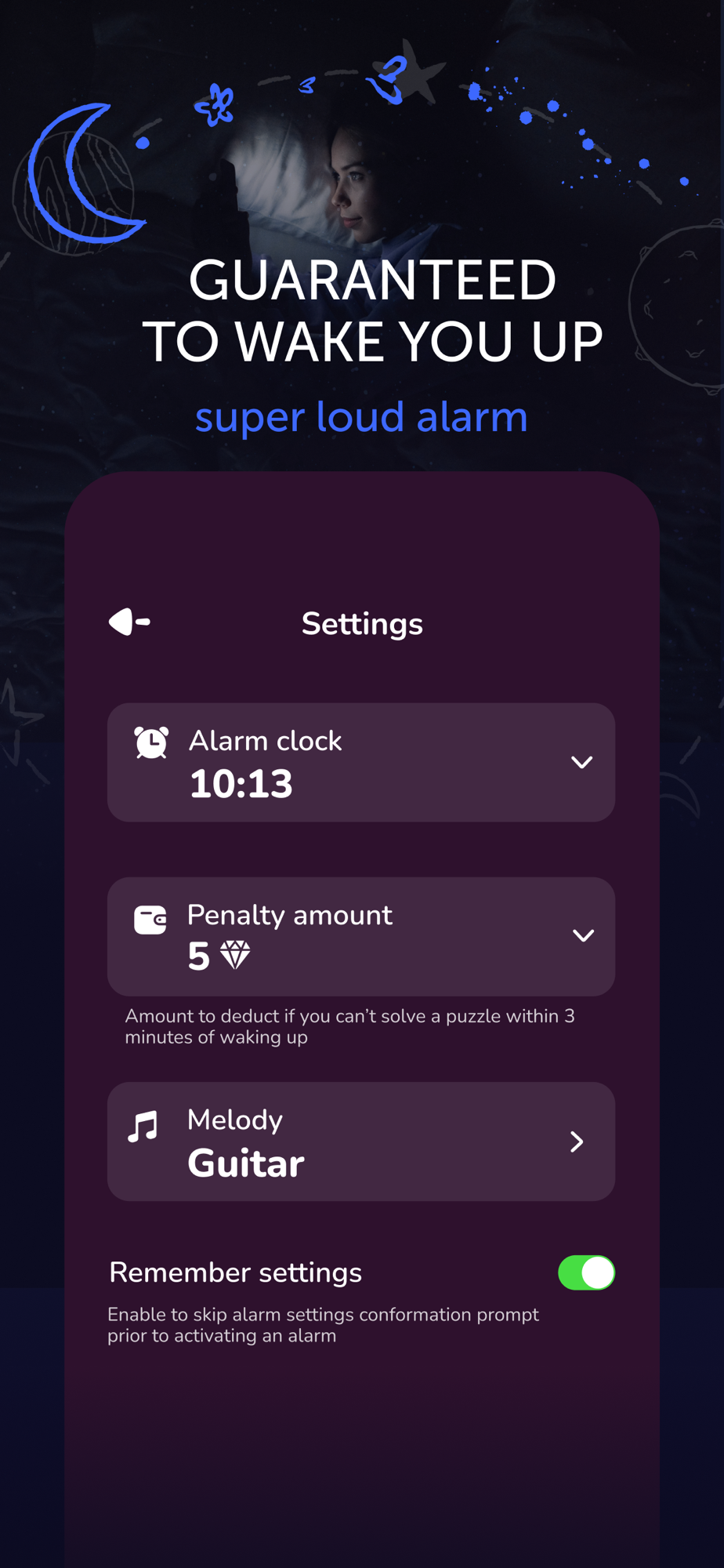 1. Set a wake up time – and optionally a place you need to be at by that time