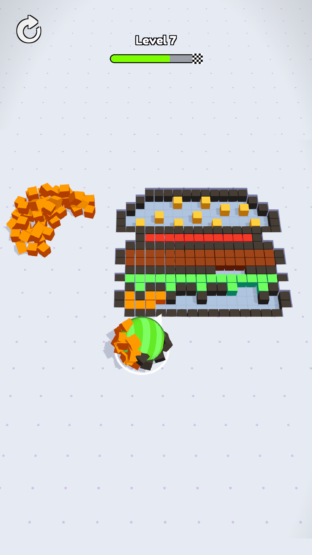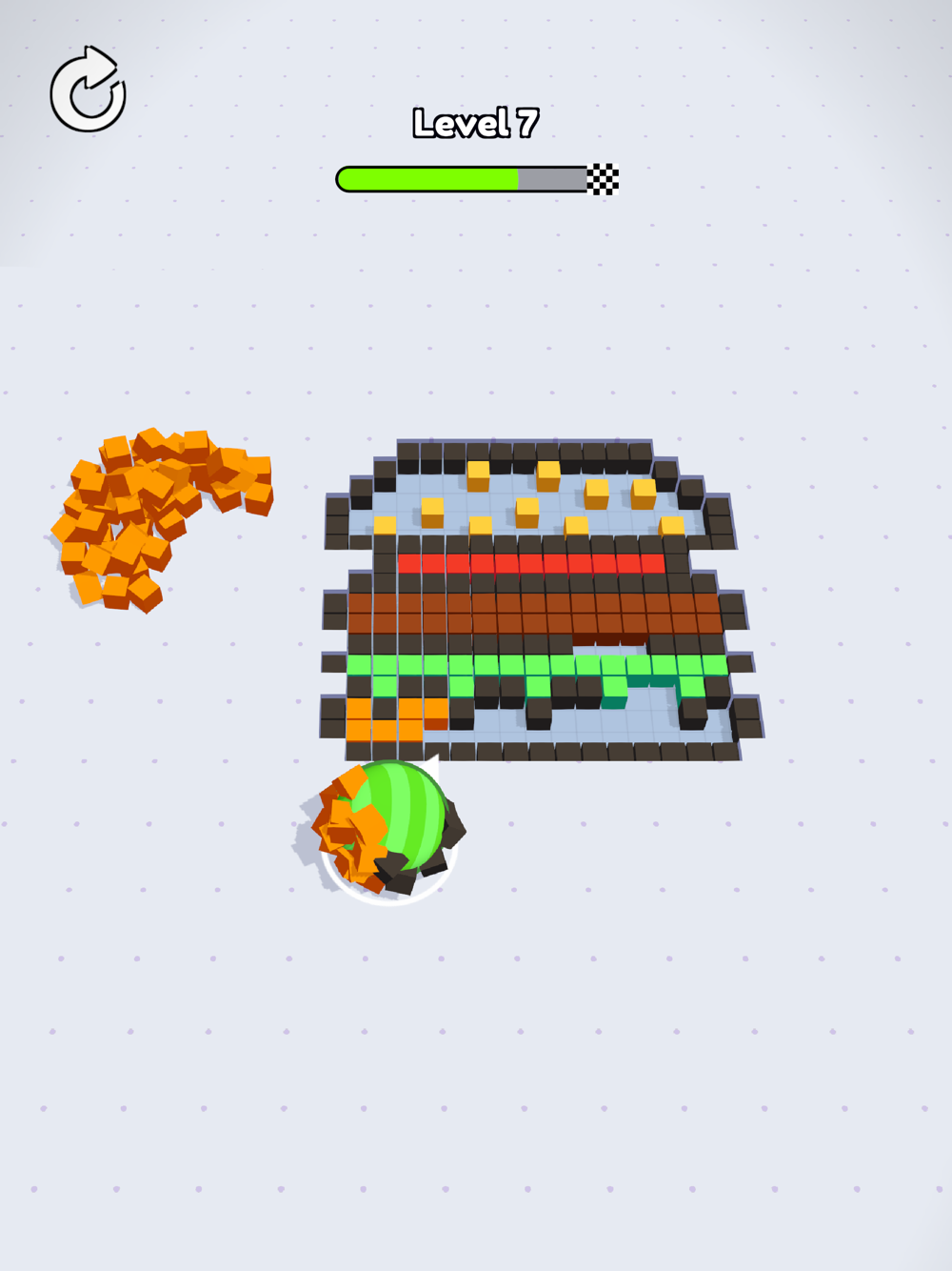 Roll the ball, stick to the paint and fill all the slots with colors!
