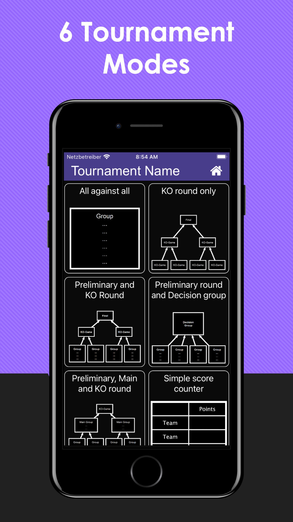 Competition Manager is a manager for tournaments and competitions. It offers the possibility to create tournaments, create tournament plans, execute and manage them. The type of tournament can be designed flexibly, from a simple all-against-all tournament to tournaments with preliminary round, main round and knockout phase. A total of six different tournament modes are available. The teams that advance from each round, length of the knockout round or an optional second round, can be customized to individual preferences. As additional features, the app offers a simple score counter and a timer. The flexibility of the app allows you to add teams even after the tournament has started.
