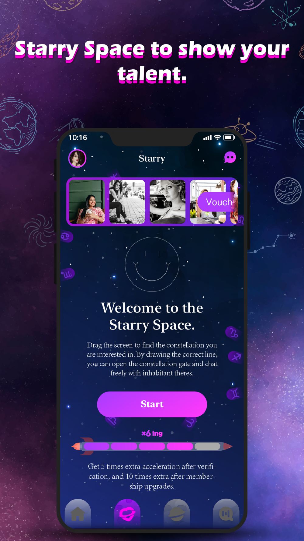 Find the perfect horoscope compatibility by matching the stars on Starry. Starry gives you access to twelve horoscopes when you move the starry sky background. You can click to select the horoscopes available and then connect each star in the horoscope along the proper line. You can easily view the resident's profile after you have gained access to the horoscope by connecting the stars properly. A reminder will be sent out on the third attempt if you fail to connect.
