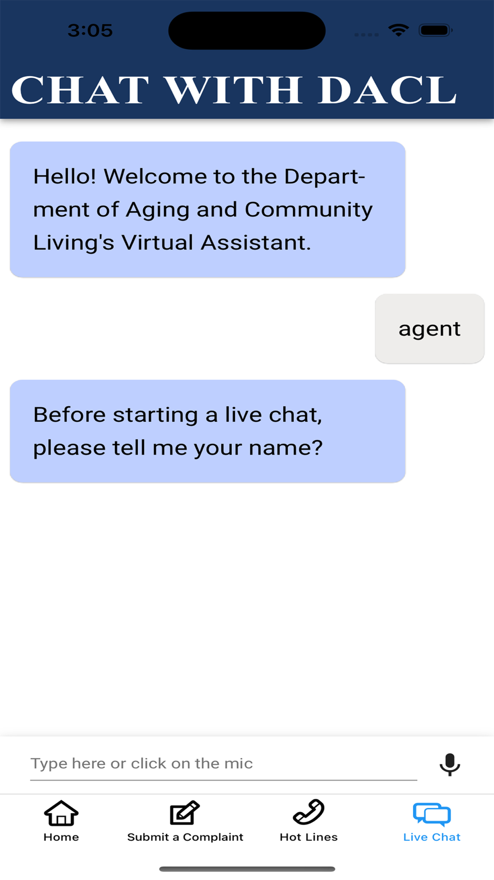 added a chat feature in this version to enable the DC residents connecting to the DACL live representatives directly in the business hours.
