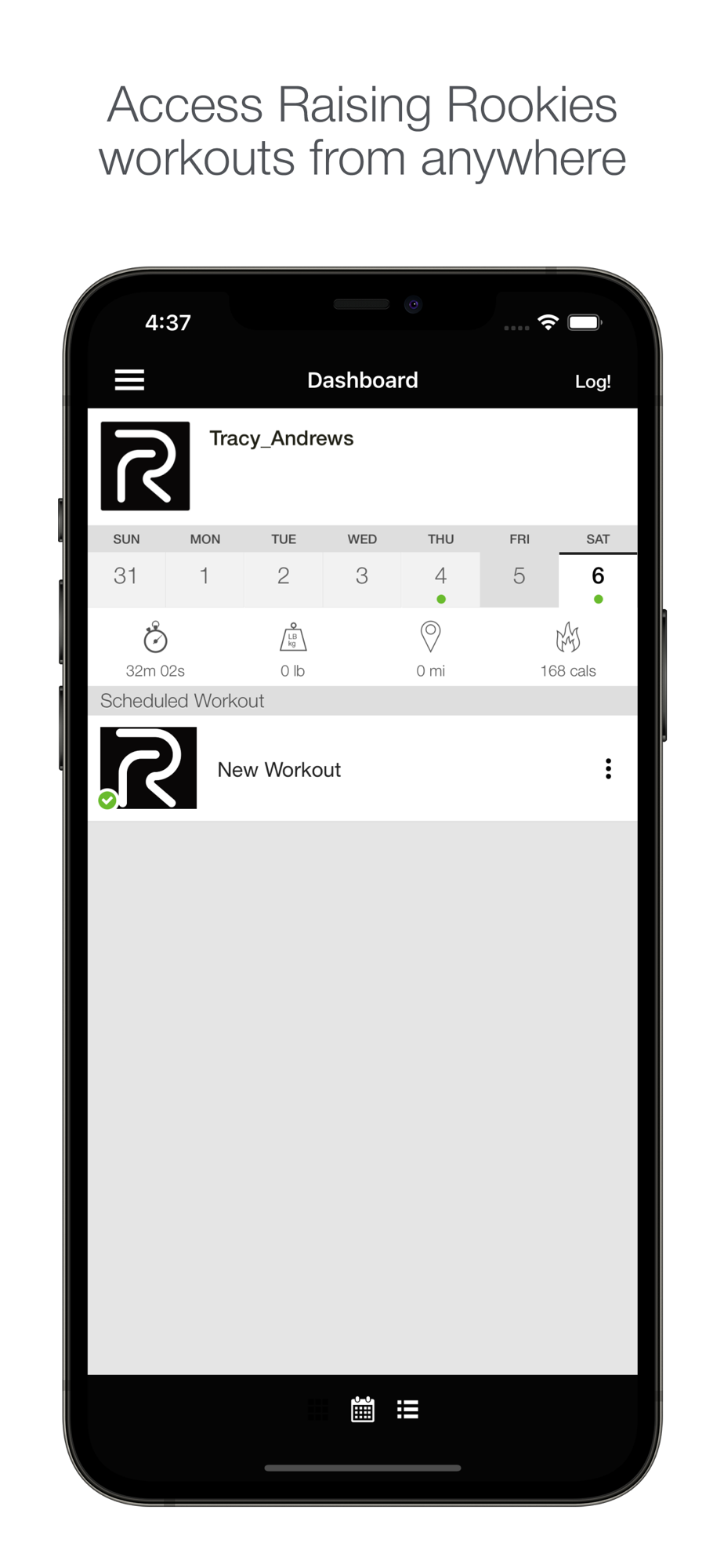 Log your Raising Rookies workouts from anywhere with the Raising Rookies workout logging app! View your logged workouts, see upcoming scheduled workouts, and view instructional videos inside the app. Track your progress and get the most out of your Raising Rookies workouts!