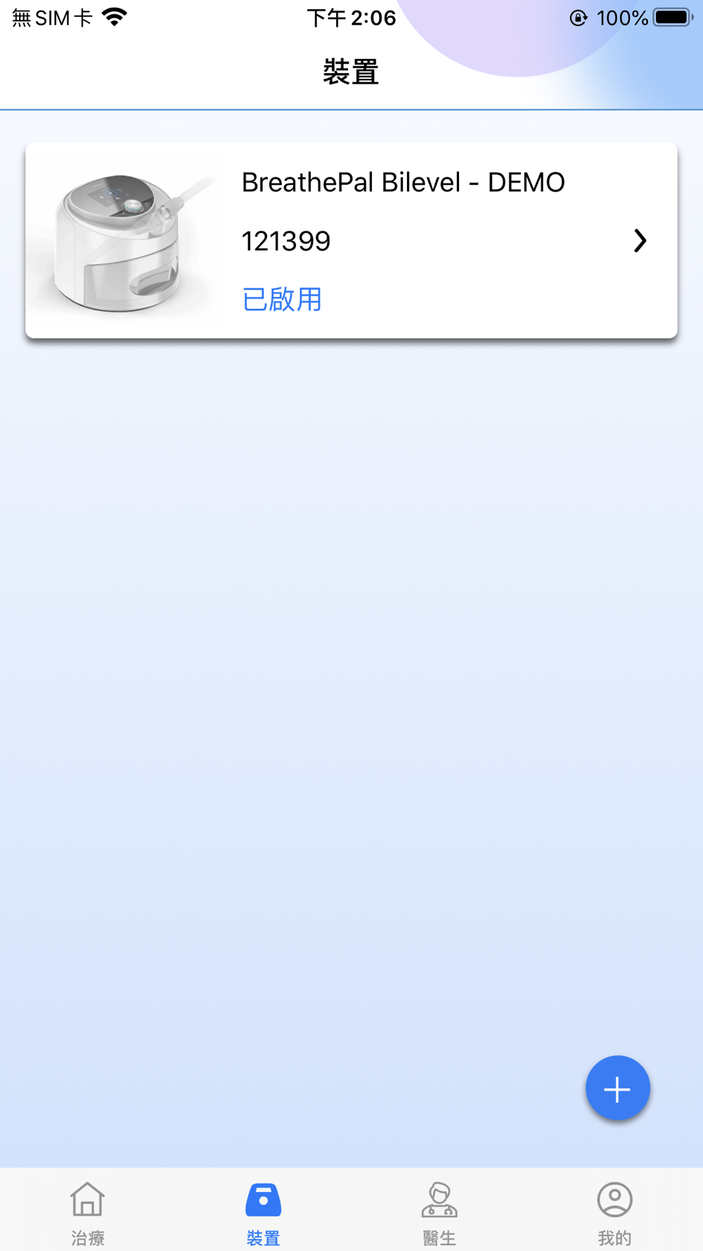 注意 : 若要使用此應用程式,請記得將機器端的Wi-Fi功能開啟,並依操作手冊完成連線設定,以確保治療數據完整且即時上傳。