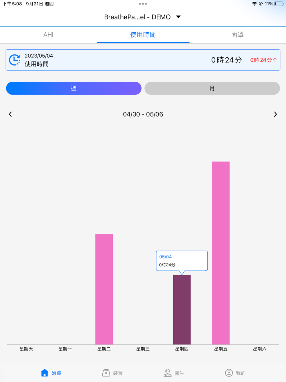 使用BreathePal APP,只需註冊及登錄即可輕鬆檢視您的每日睡眠治療數據,以長時間監控您的治療進度。醫療照護人員還可以透過網頁下載治療總結報告以供記錄或分享給醫療保健單位。