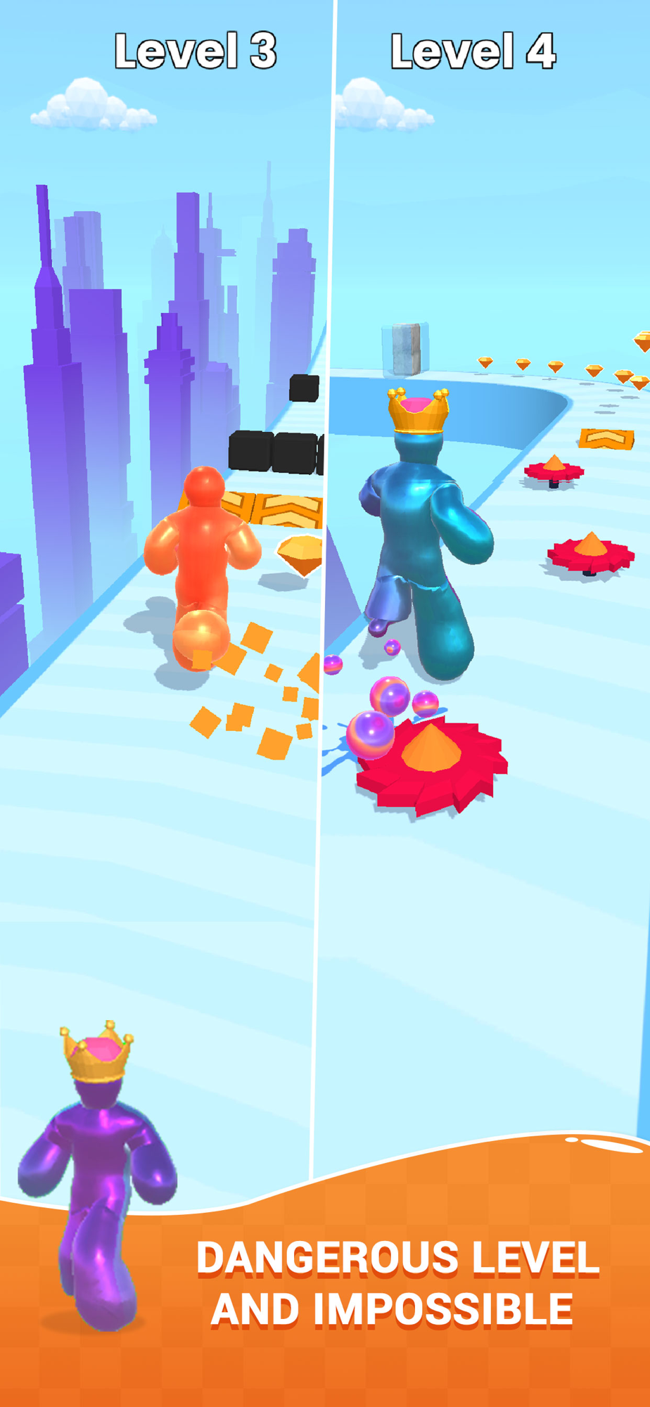 Your Jelly Man run can be damaged after colliding with obstacles in running bubble bubble runner game.