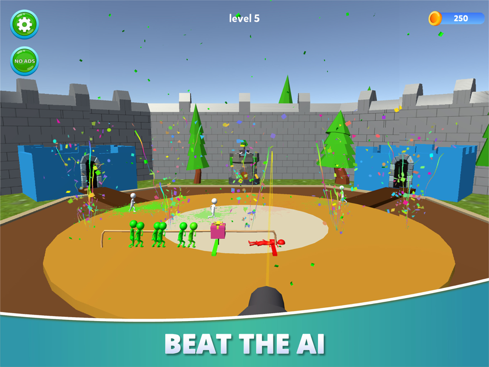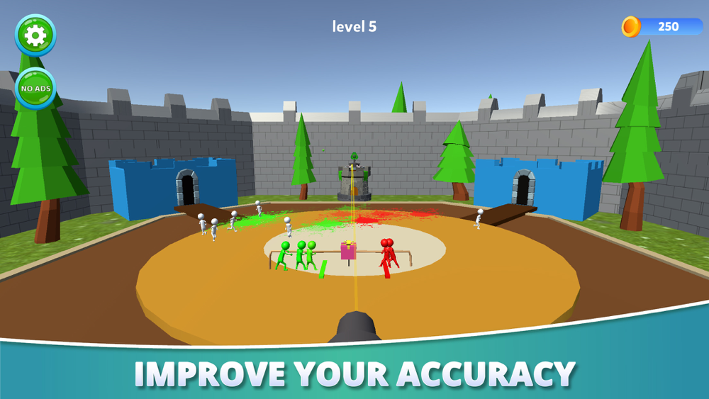 1.Press play on the menu there are number of players running here and there you have to pick the cannon and shoot them to add in your team.As many cannon shoot you make as bigger will be your team.