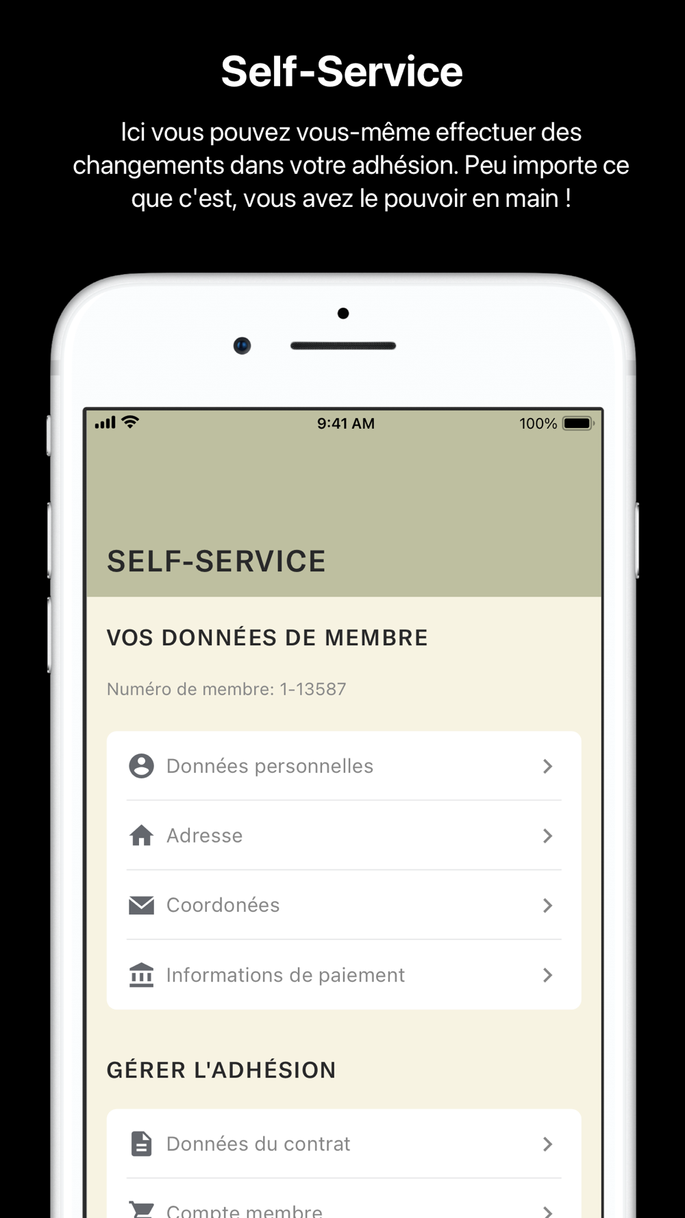 Une application pour une expérience complète. Tirez le meilleur parti de votre adhésion à HEIMAT by Waris Dirie. Grâce à cette application, vous avez un contrôle total sur votre contrat et pouvez ajuster votre adhésion partout et à tout moment. Vous souhaitez modifier vos coordonnées bancaires ou votre mode de paiement ? Vous avez déménagé et avez une nouvelle adresse ? Ou vous avez besoin d'une pause et souhaitez demander une période de repos ?Quoi qu'il en soit, c'est vous qui décidez!