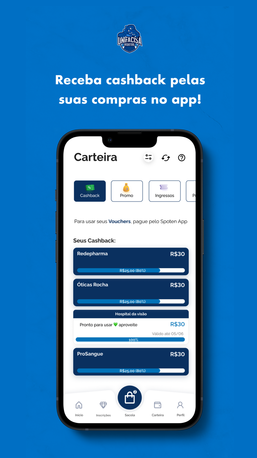 Contamos com seu apoio e através do APP da UNIFACISA você poderá comprar seus ingressos, virar sócio torcedor, acompanhar as notícias do clube, acompanhar o elenco e aproveitar de toda a rede de parceiros do time.