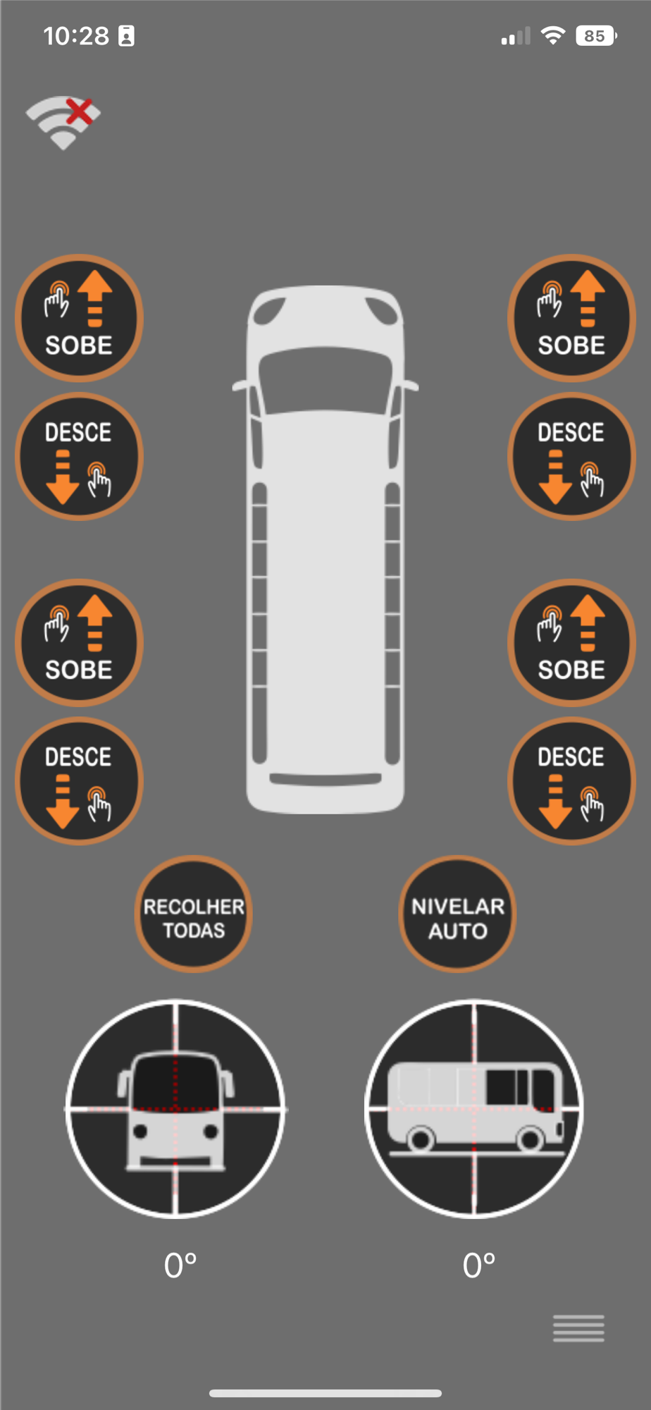 Esse aplicativo permite o controle remoto do sistema de nivelamento de Motorhome através do acesso ao Wi-Fi da placa.