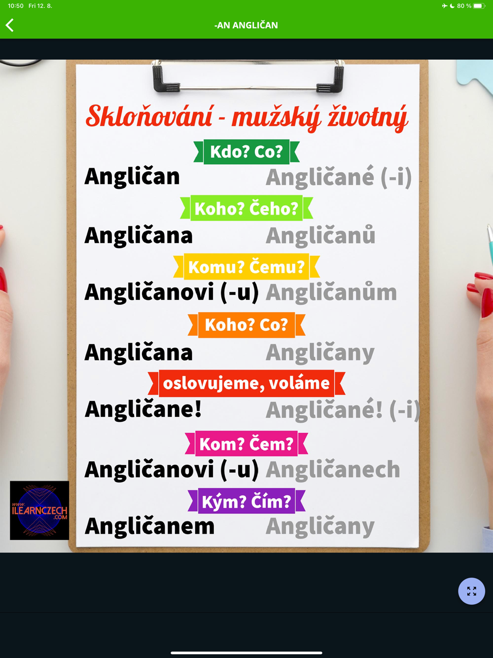 В конце вы найдете местоимения и числительные, которые можно склонять, но мы не делаем различий по роду, и ссылки на полезные интернет-ресурсы, где вы можете найти склонения слов, которых нет в приложении, и другую информацию о чешской грамматике.