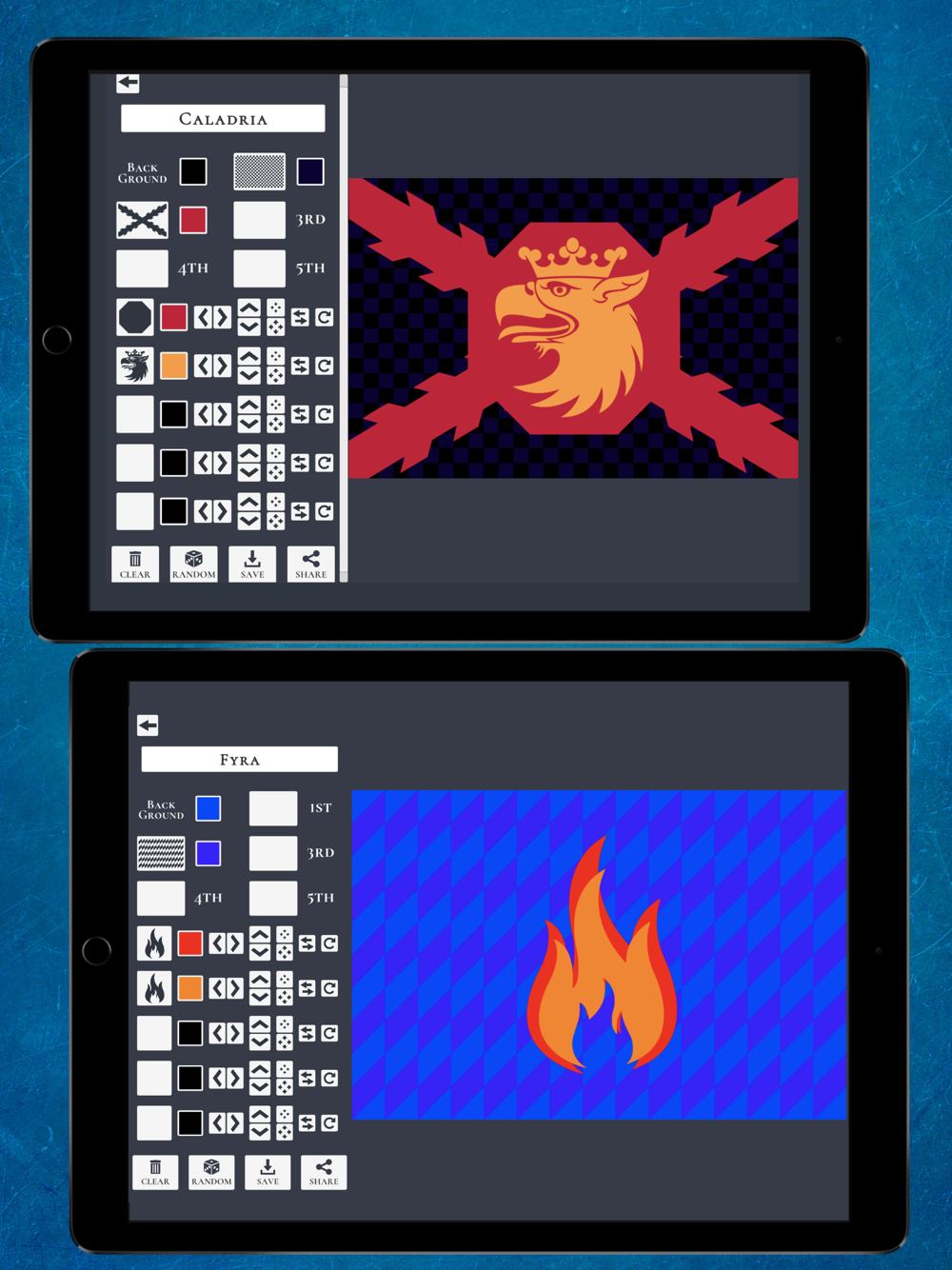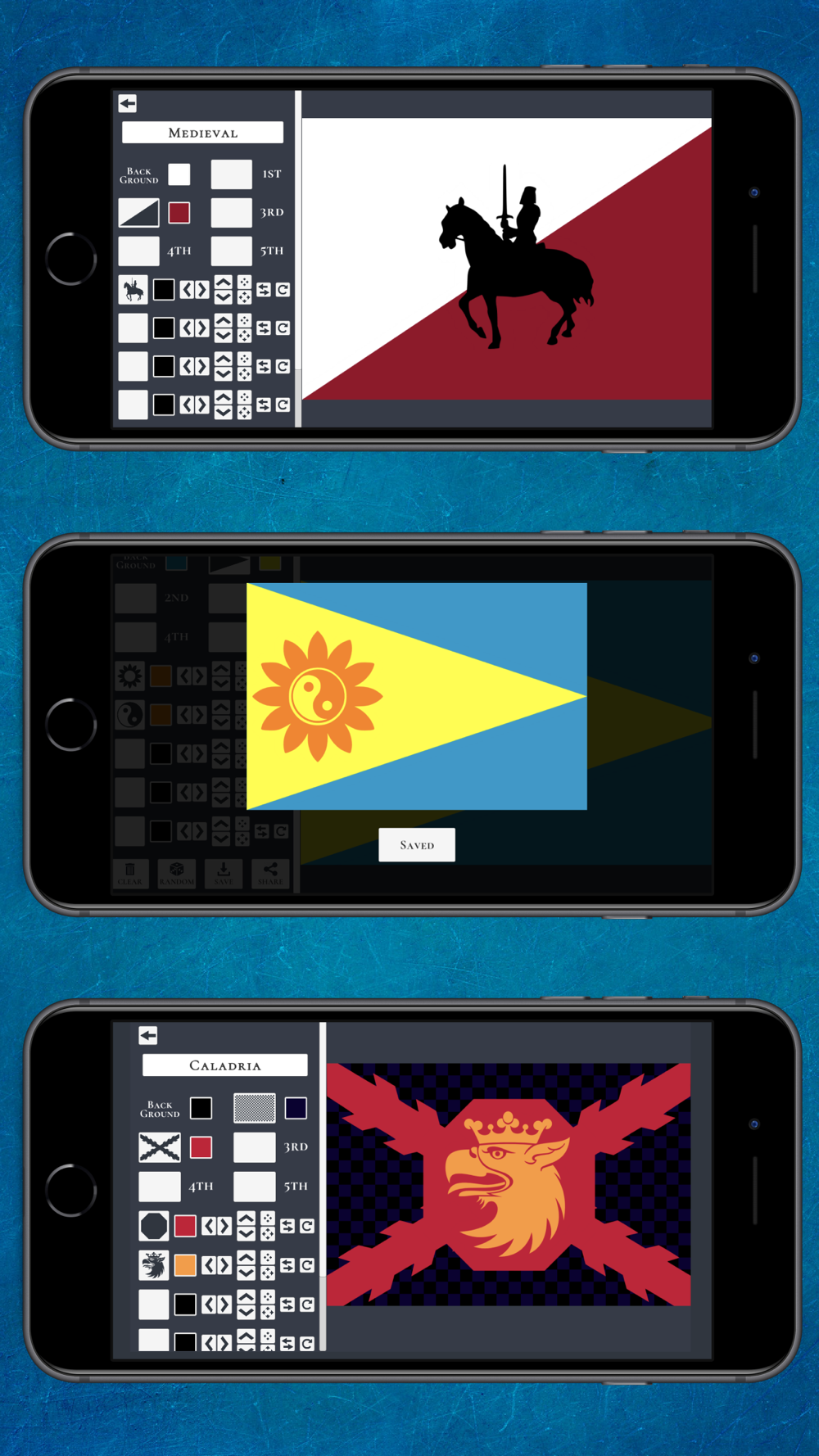 Each emblem and design can have a separate color! Every emblem can be moved, resized, flipped and rotated to make the flag you want!