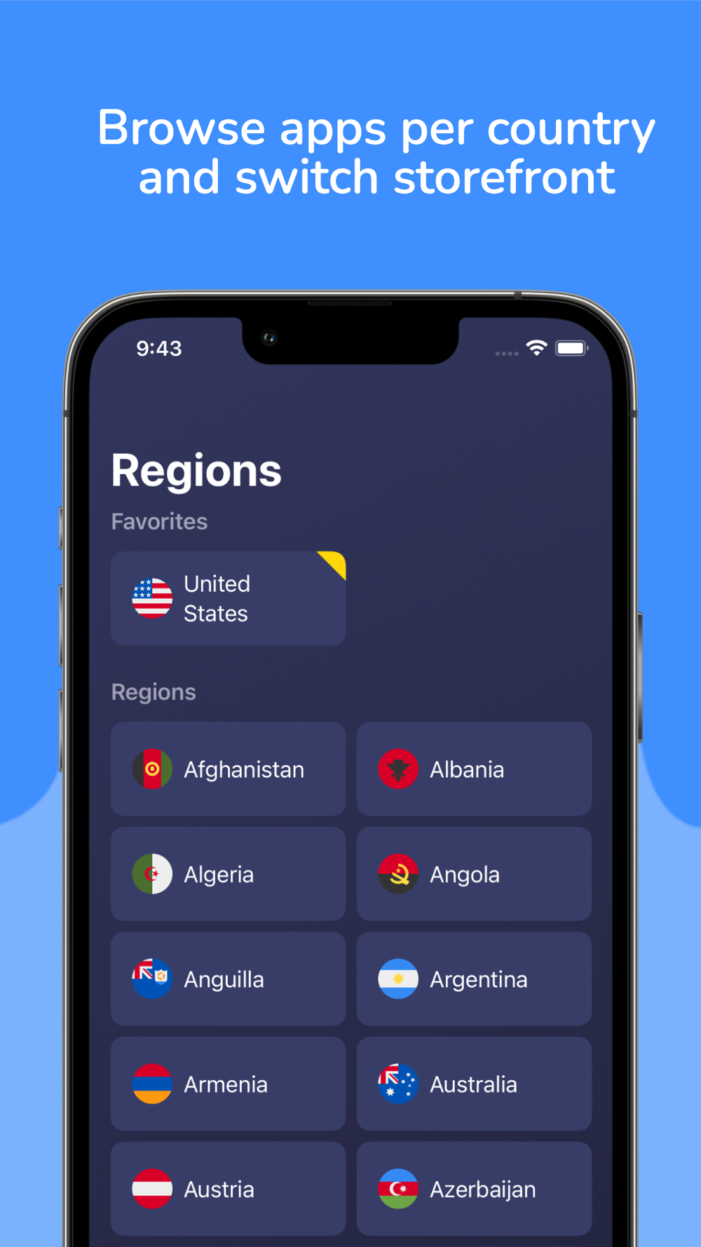 - Browse apps per country with top chart. View detail targeted to specific region and locales