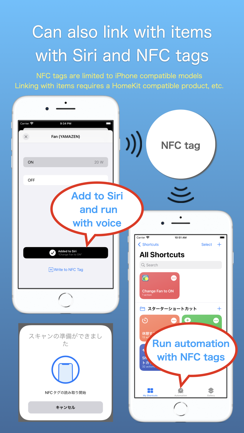 Works with Siri, HomeKit, and other home automation devices like SwitchBot, Nature Remo, TRÅDFRI, and more.