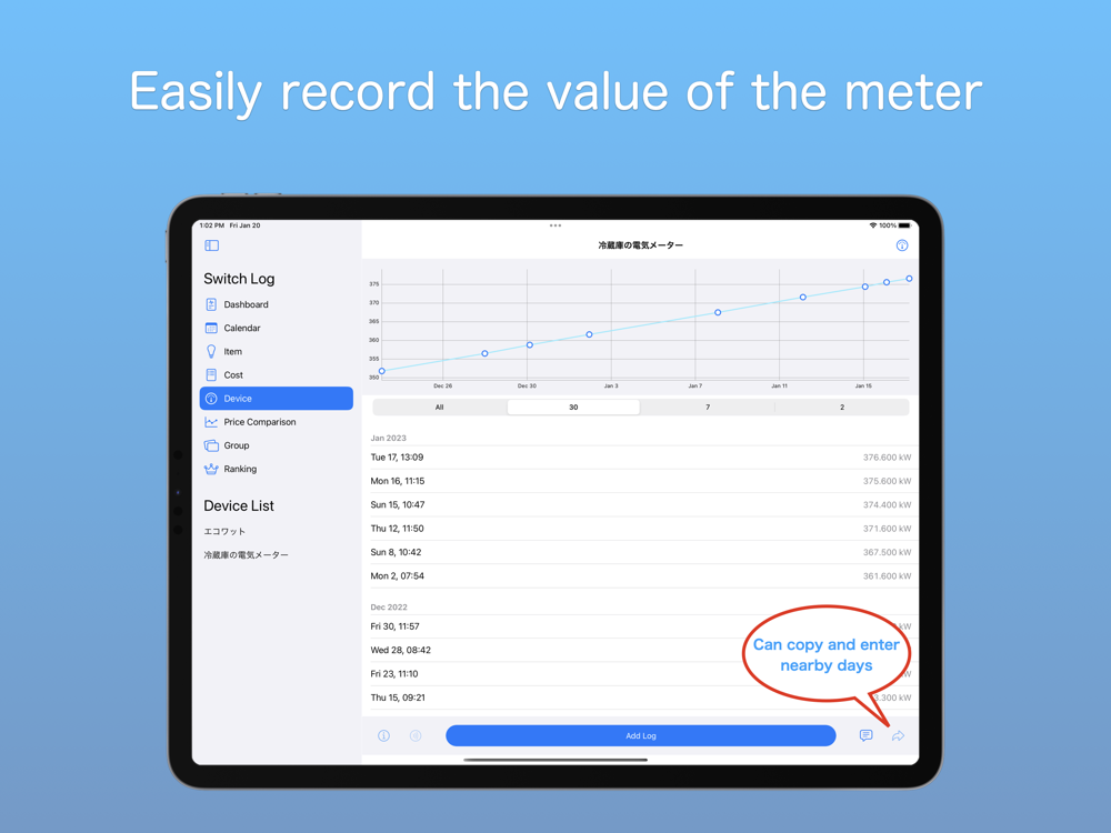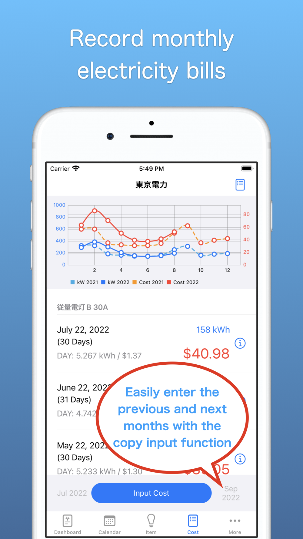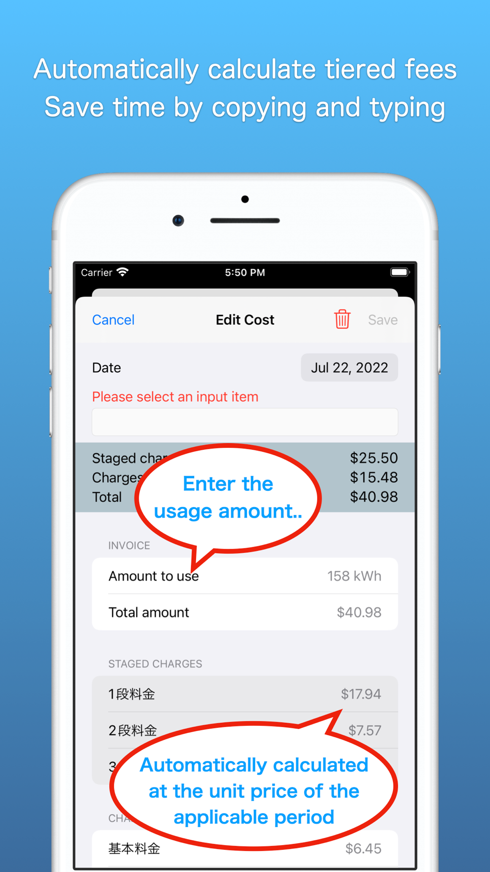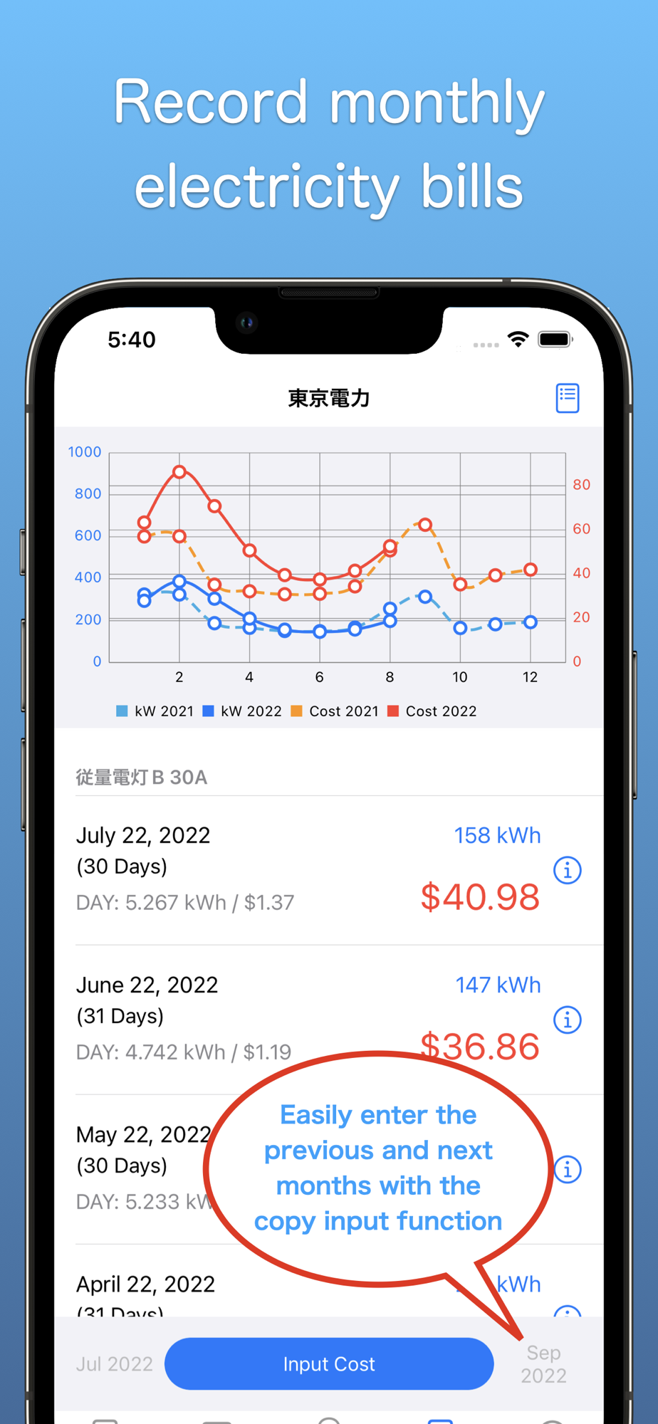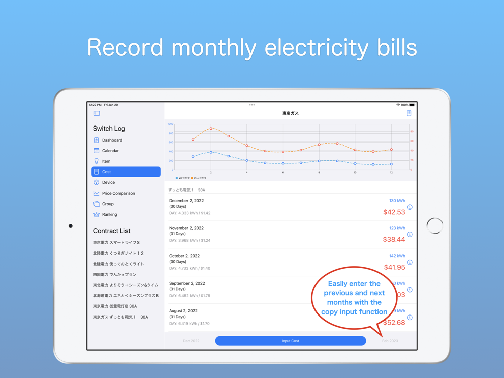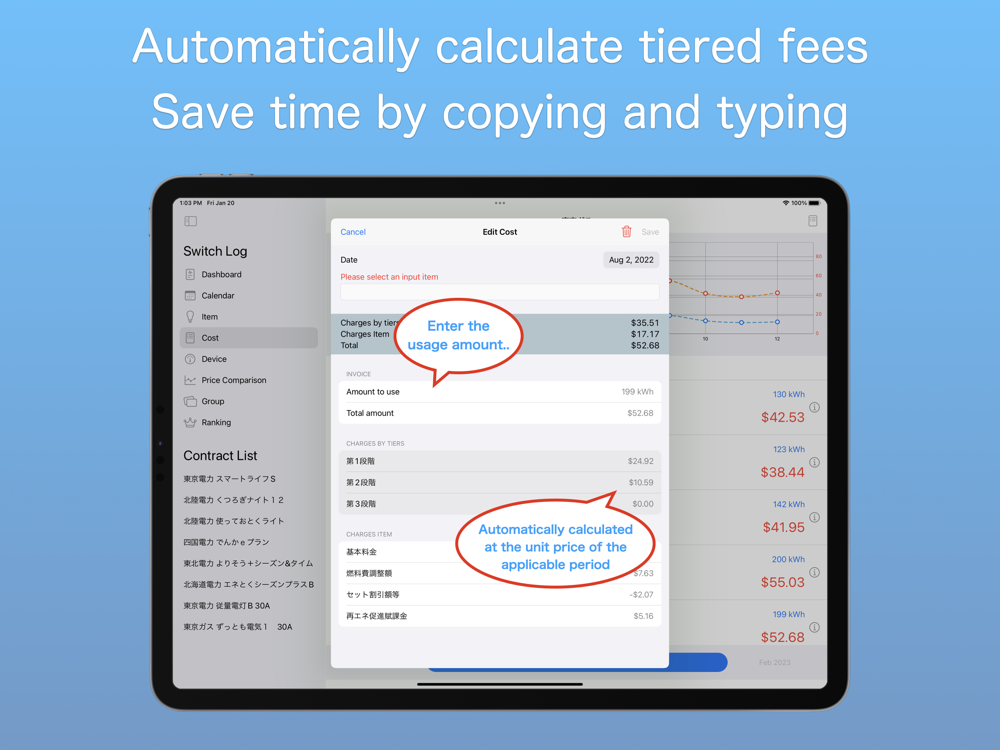 - Can register and record electricity bill details. (Basic charge, fuel cost adjustment amount, etc.)