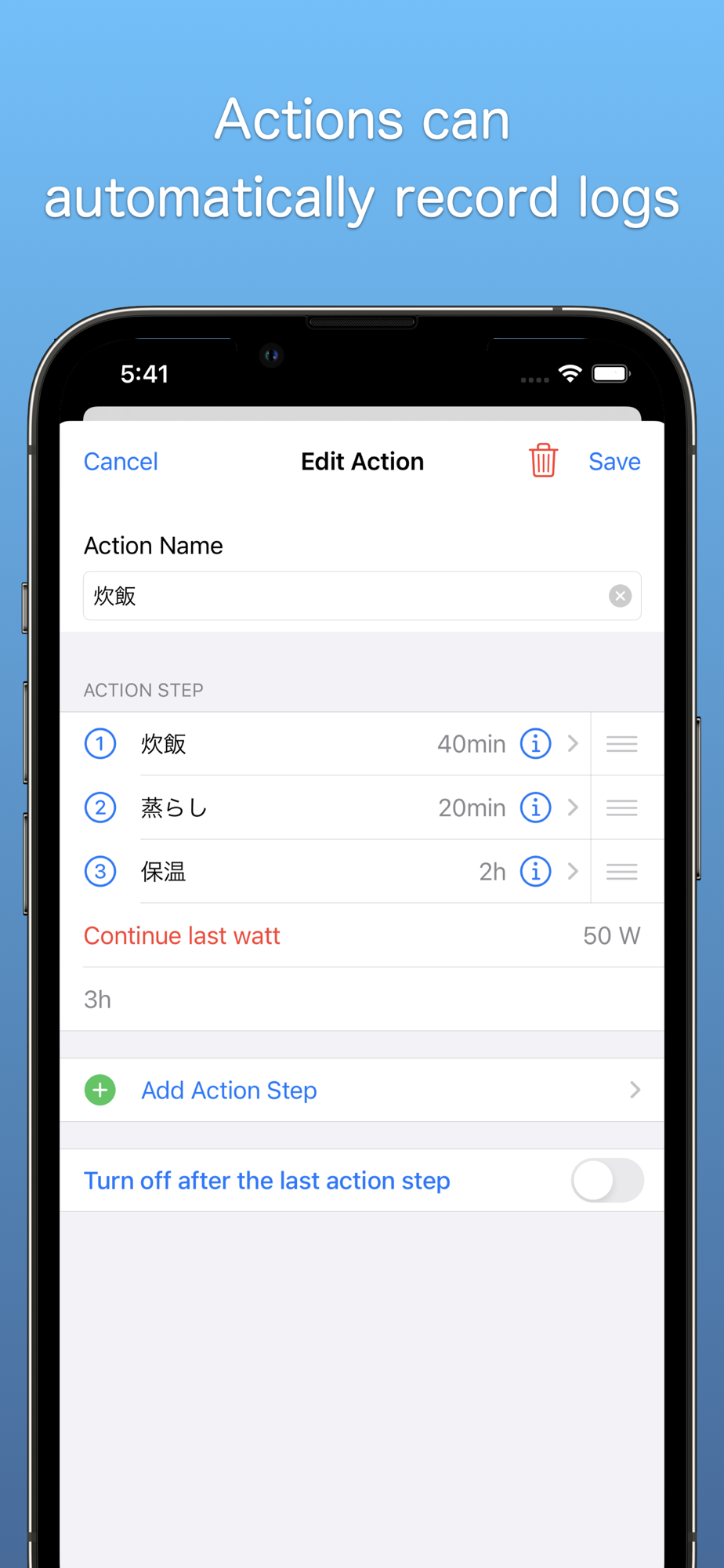 Records ON/OFF of lighting and home appliances, and displays electricity charges in real time. Grasp usage trends with daily and monthly graphs to help you save money on your electricity bill.