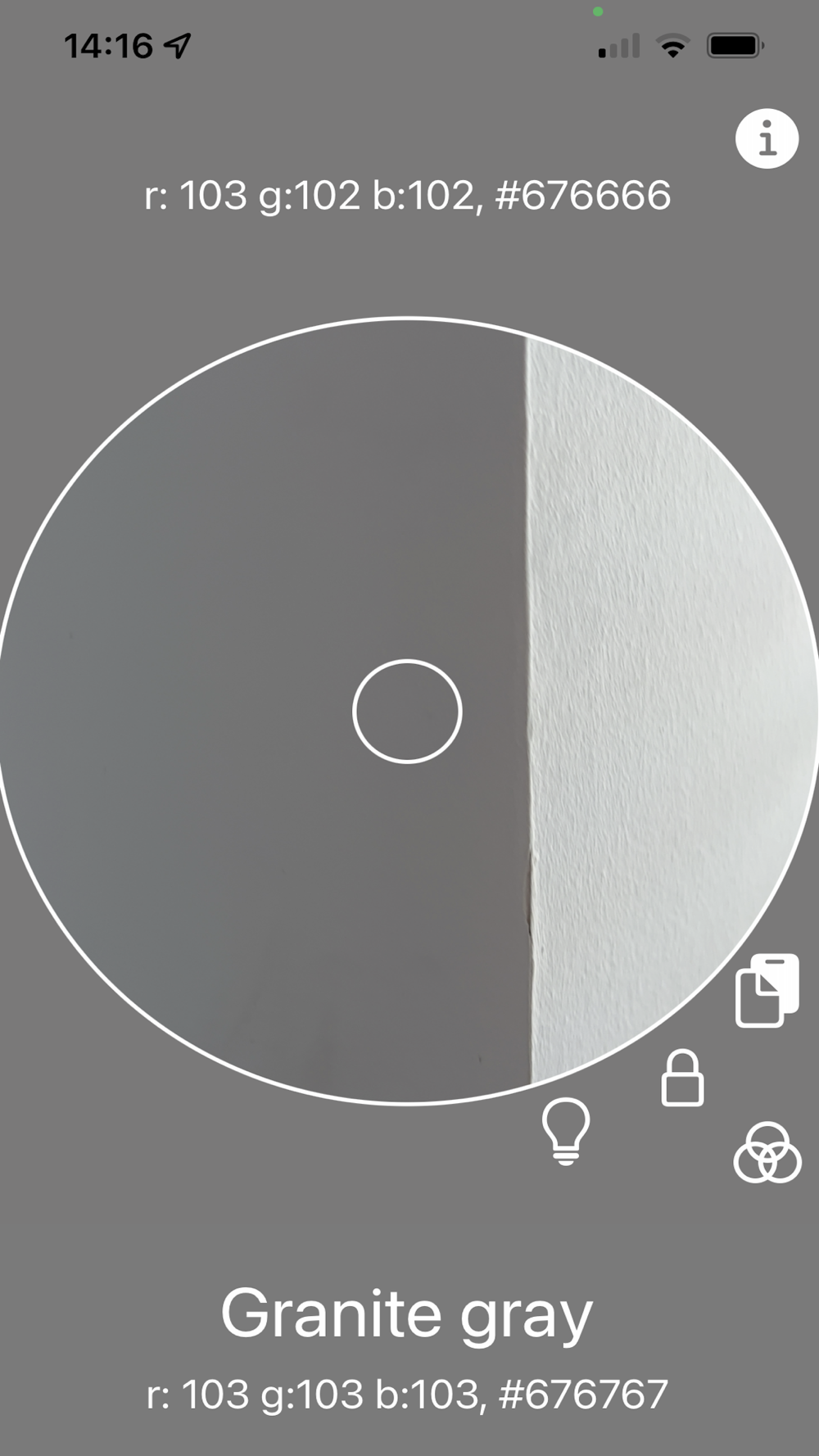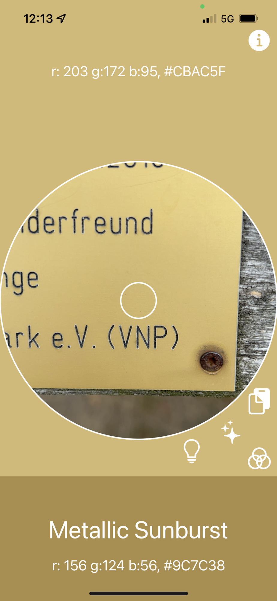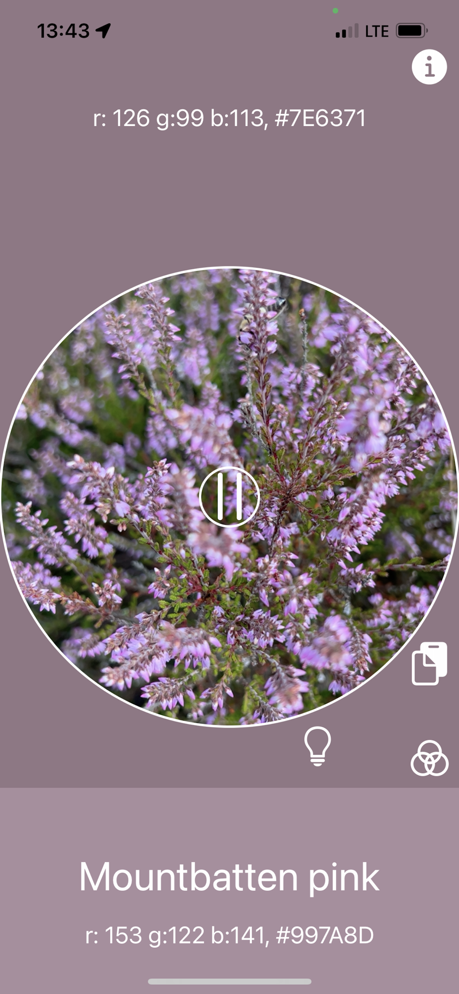 Use PalettePal to identify colors by name. Point your camera at the color and swipe through the closest matching color names. Calibrate white balance and use the flash for better results. Copy the definition of your favorite color to the clipboard, alongside its RGB and HEX representation.