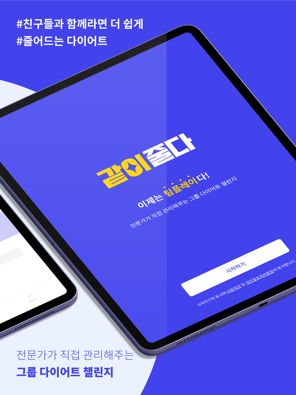 같이줄다는 스마트폰으로 언제 어디서나 사람들과 함께 다이어트를 할 수 있어요. 혼자 할 때보다 조금 더 쉽고 재밌게, 그리고 전문가와 함께 더 체계적으로 체중을 감량하고 건강한 습관을 이뤄보세요.