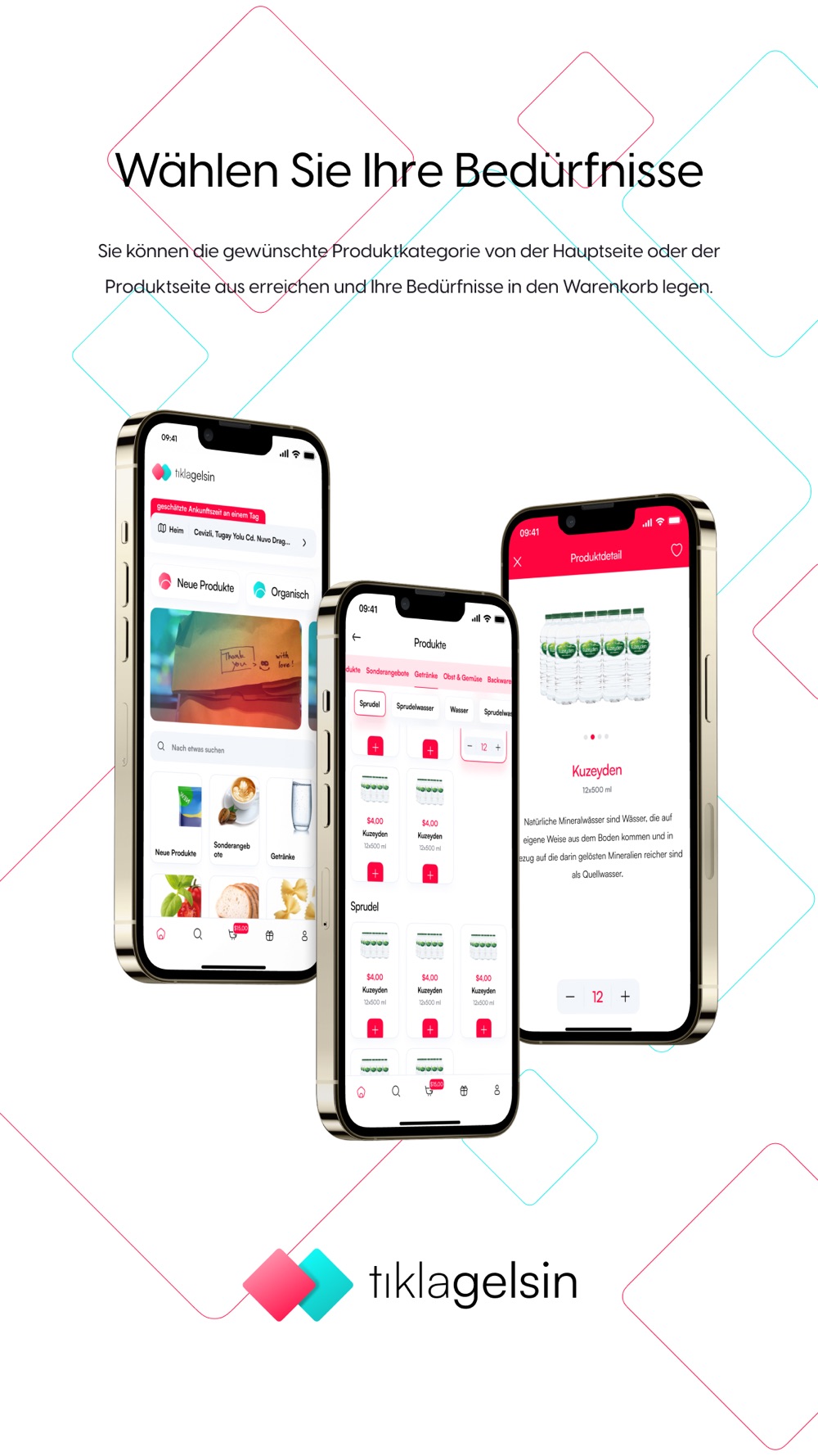 Bir Tıkla Gelsin ist eine mobile Anwendung, die tagsüber Wasser, Getränke, Grundnahrungsmittel, Snacks und Körperpflegebedarf an Ihre Tür liefert.