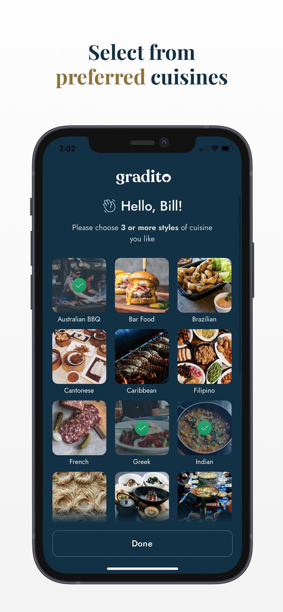 - Select from preferred cuisines.