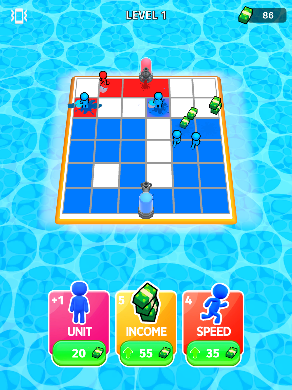 Spawn your units in order to defeat enemies and become a winner. But be careful about economy, it might lead you to a total failure!