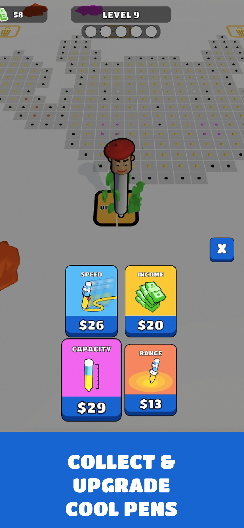 Collect ink and color pixels with your cool pens.