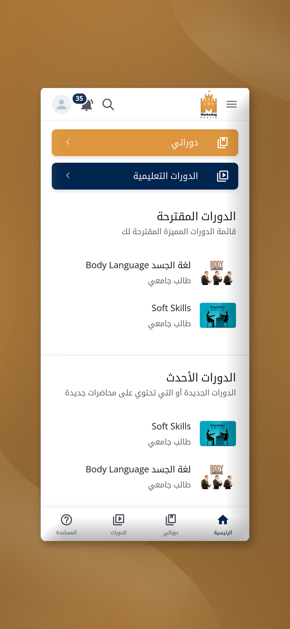 استمتع بالتعليم عن طريق الوصول الي مجموعة مميزة من الفيديوهات التعليمية تم صناعتها بشكل مميز من Marketing Castle بجانب التقييم المستمر في الأسئلة و إمكانية الوصول للكثير من المعلومات المميزة في مجال التسويق