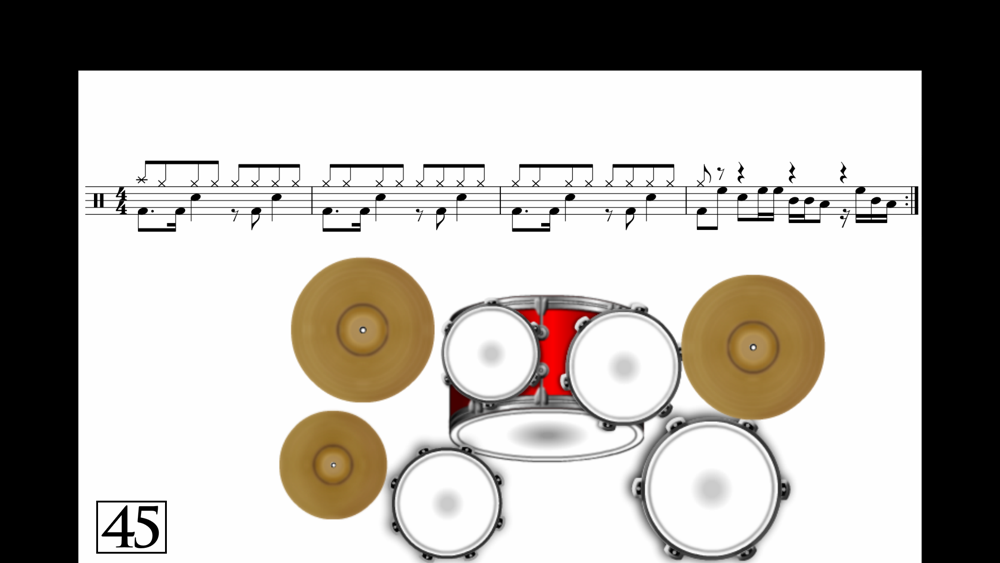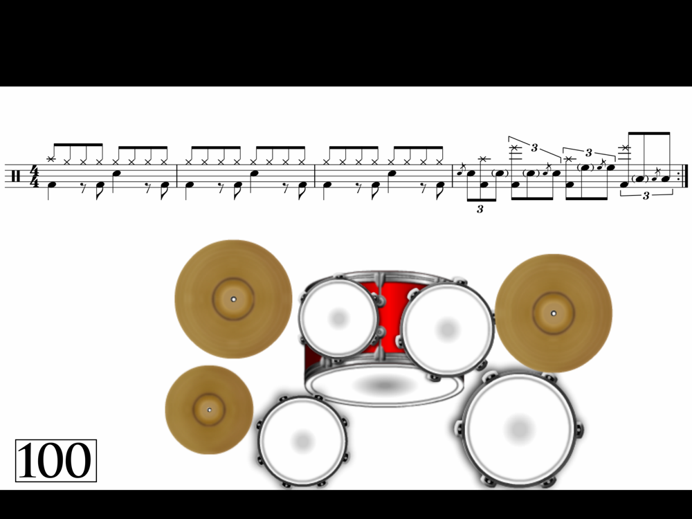 On the other hand (if you don´t know how to read music) the animations of the notes on the staff and the parts of the Drum Set that have to be played, will help you to intuitively understand how music is written.