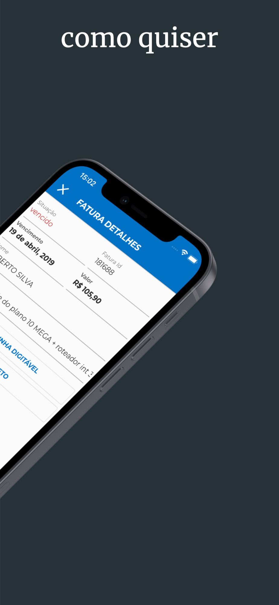 - notificações sobre sua conexão e boletos