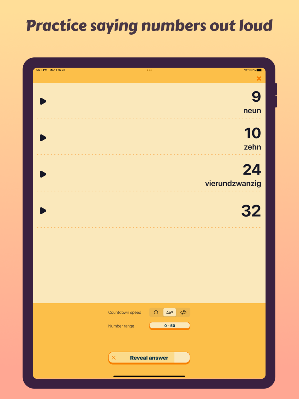 Improve your understanding of numbers in the German language with these simple drills.