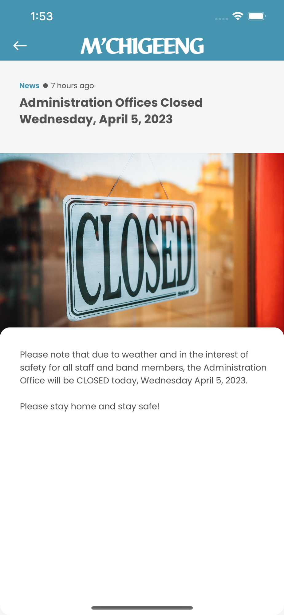 Welcome to the Official App of the M’Chigeeng First Nation! This app has been developed by M’Chigeeng First Nation's government for the purposes of facilitating better communication from band leadership for a boost in transparency, engagement, and feedback. Additionally, the app will allow M’Chigeeng First Nation staff, community members, band members, and the general public to keep up with goings-on around the Nation via push notifications.