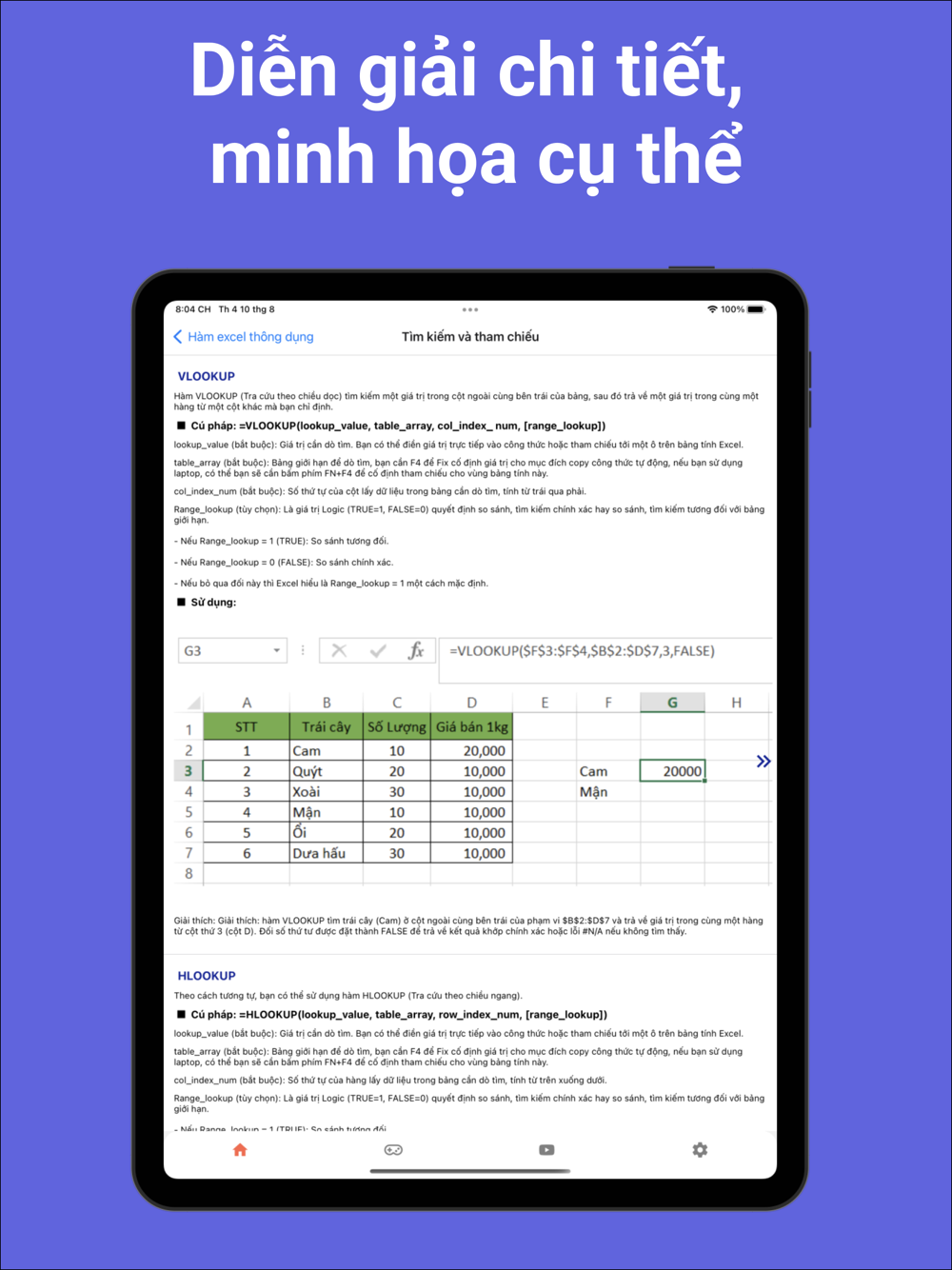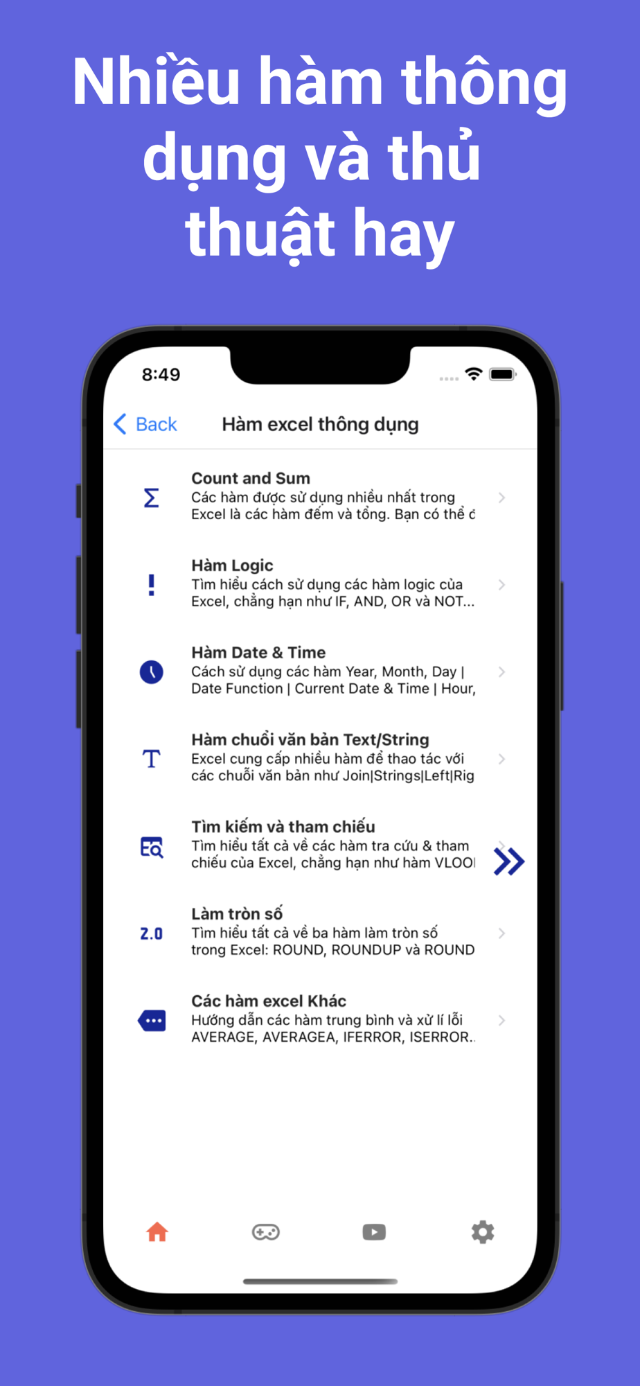 Hoc Excel được phát triển để giúp bạn học excel dễ dàng mọi lúc mọi nơi ngay cả khi không có kết nối internet. Thông qua hướng dẫn chi tiết theo từng bước với ảnh minh họa trực quan và kết hợp game trắc nghiệm. Với Hoc Excel bạn có thể tra cứu cách sử dụng tất cả các hàm excel thông dụng, các phím tắt hữu ích mà có thể bạn chưa biết, cách vẽ biểu đồ, vẽ cách hình khối, nhập xuất dữ liệu, cách in ấn dữ liệu tối ưu nhất. Ngoài ra Hoc Excel còn tích hợp hướng dẫn VBA và các thủ thuật nâng cao chắc chắn sẽ giúp bạn cải thiện kỹ năng excel đáng kể.
