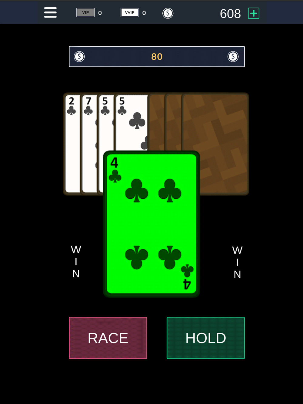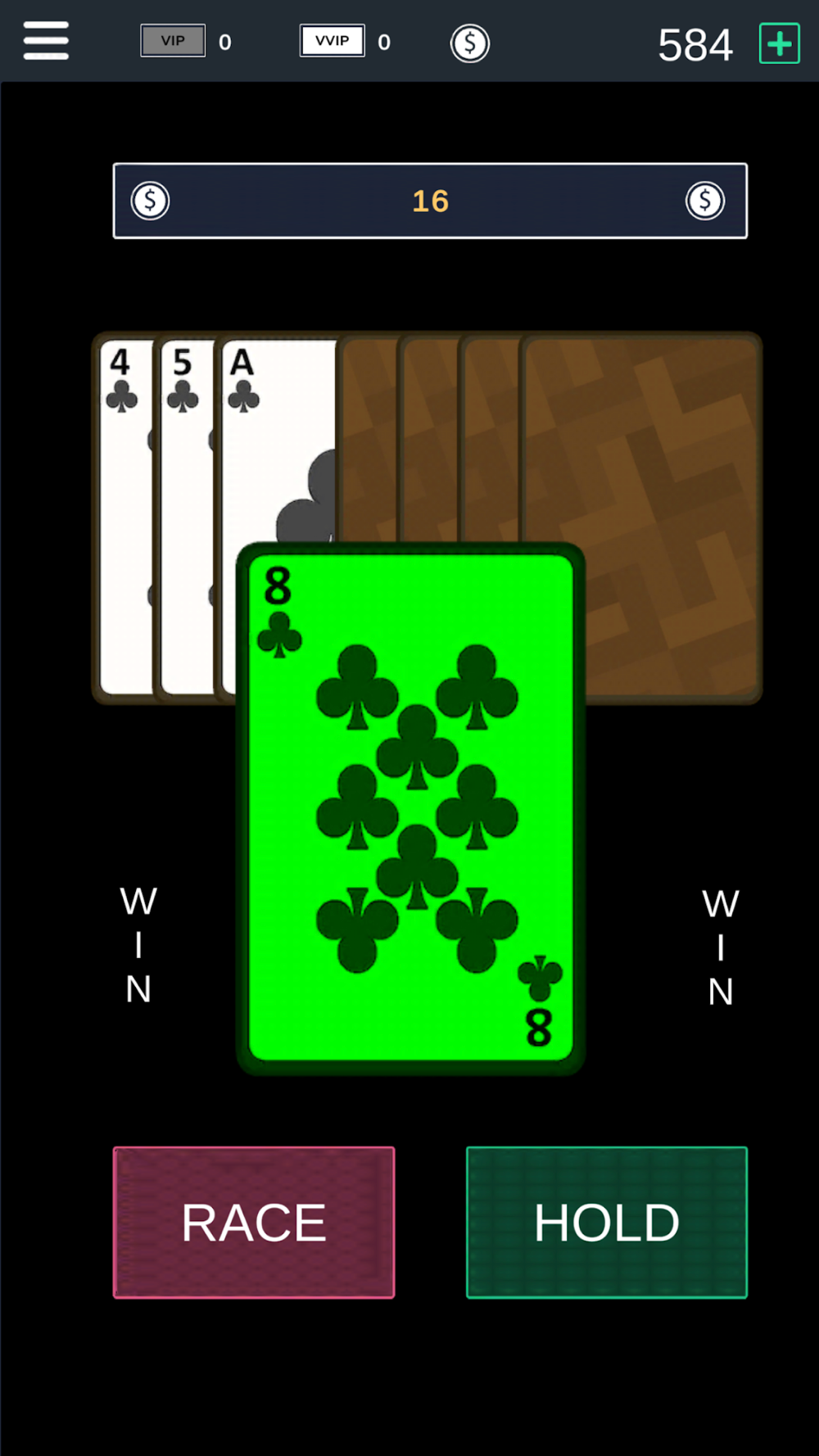 A race is a game of guessing whether a given card is greater than or less than 5.