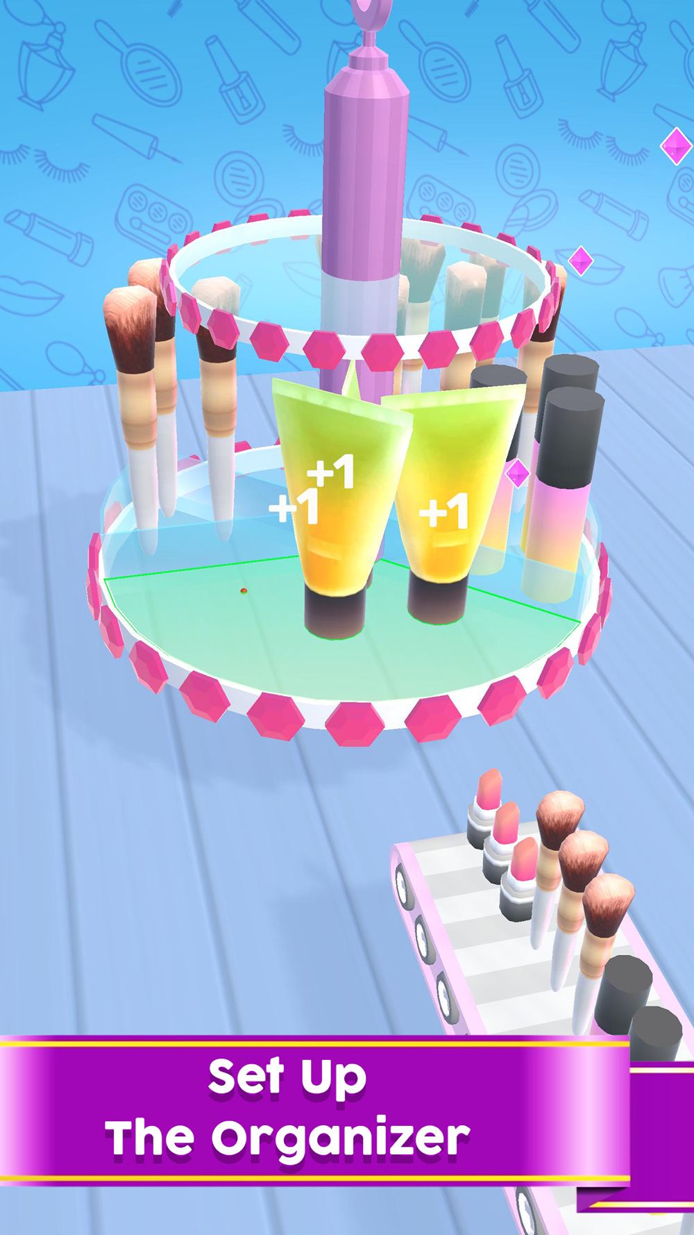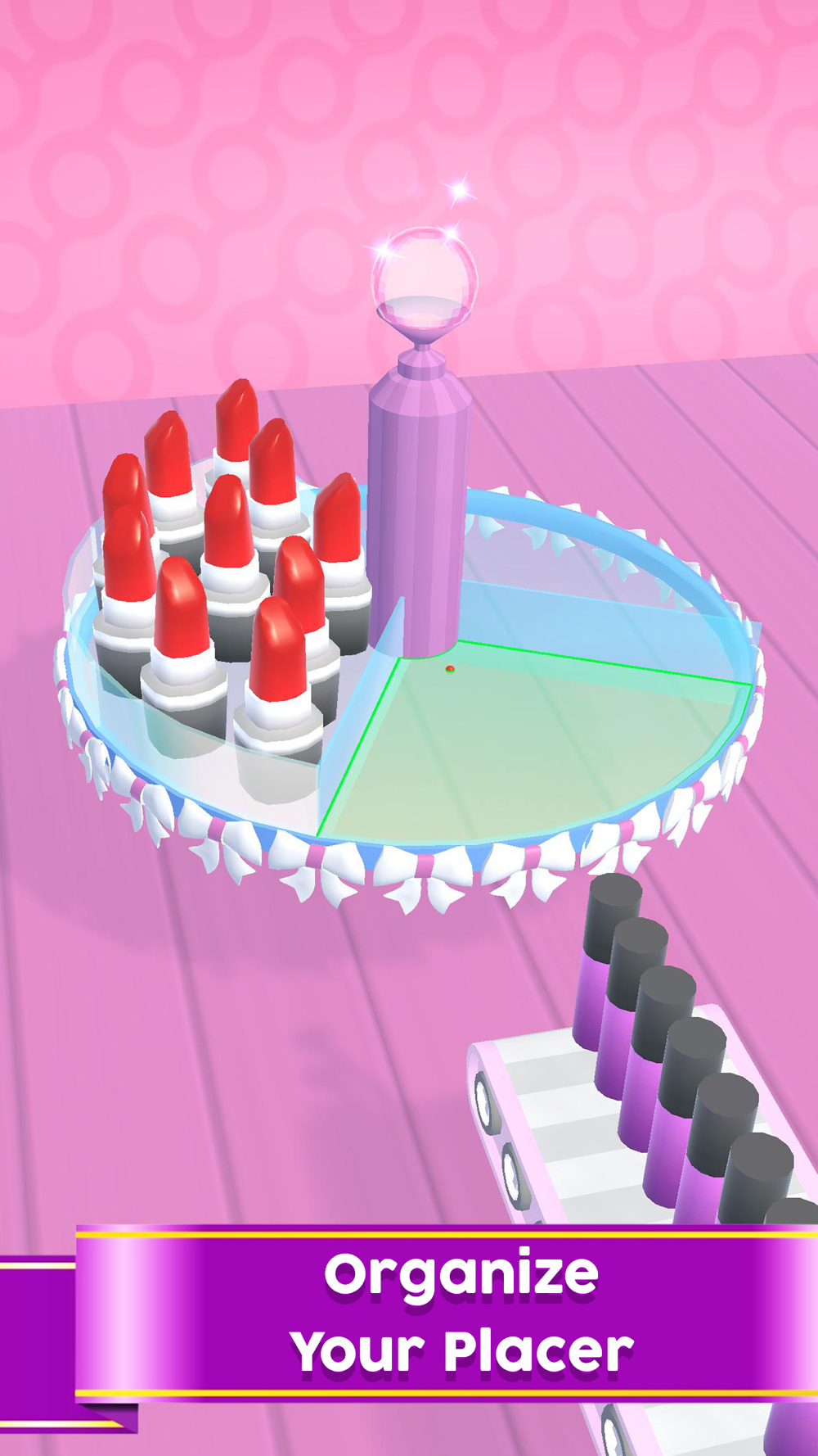 Beauty Placer helps you with that problem! In the game you can put your cosmetics in different shelves and organize them. You just tap it to place them. But it’s no good without a challenge. Every level contains different sizes of makeup products and different sizes of shelves; it is up to you to correctly fill them up!