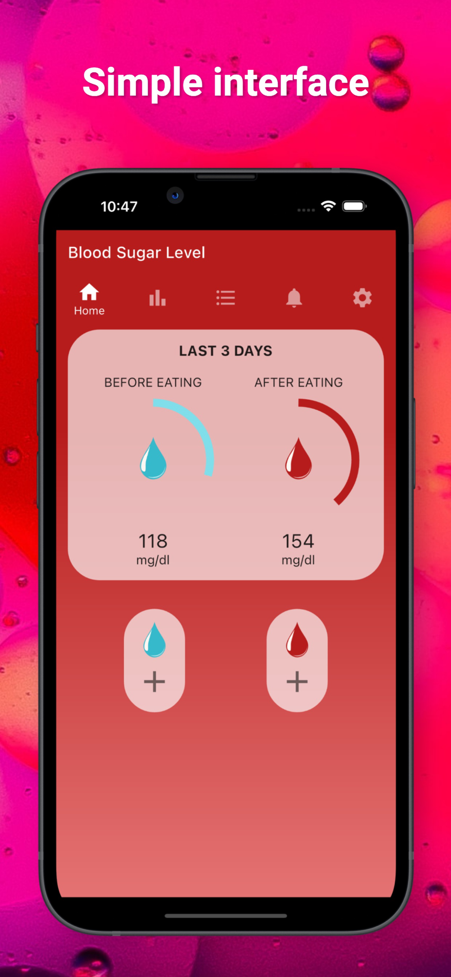 This app allows you to keep track of your blood sugar level on a daily basis. It's very simple, just record the measurements and check the statistics over time.