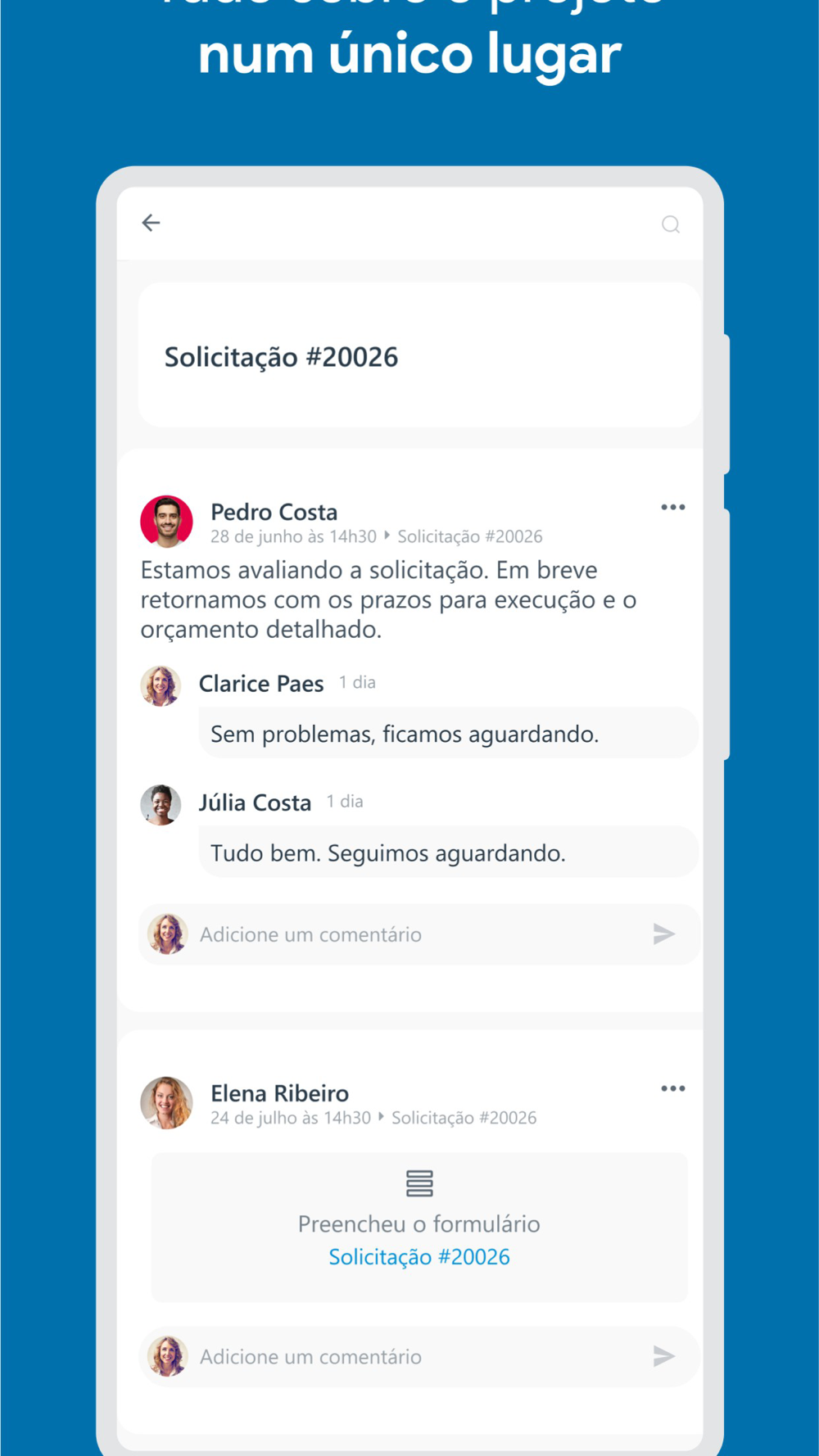 Este aplicativo facilita a comunicação entre todas as áreas da LINEPIX WORKSPACE. Você poderá fazer por aqui as suas solicitações, receber suas atualizações e ser informado do que acontece de mais importante.
