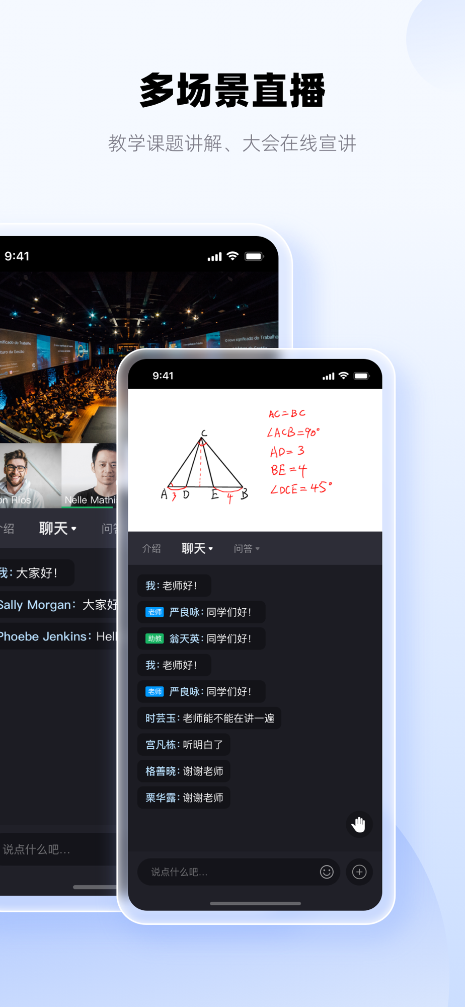 Talkcloud Live Stream is an online interactive app. In addition to live streaming, the product provides whiteboard courseware display area, online chat, voice chat, video chat, audience sign-in, desktop sharing, and video playback. These tools make communication more efficient and make interaction more real. Fully simulate offline scene to provide users with a stable, efficient and vivid online live streaming tool based on real-time audio and video services.