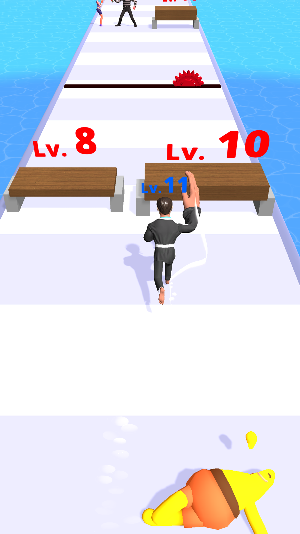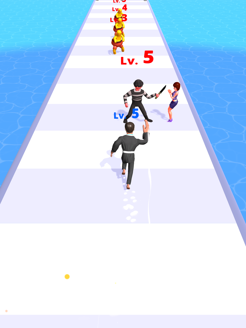 Slide the mobile phone screen left and right, operate the protagonist to upgrade the level, knock down the enemy and rescue the good man.